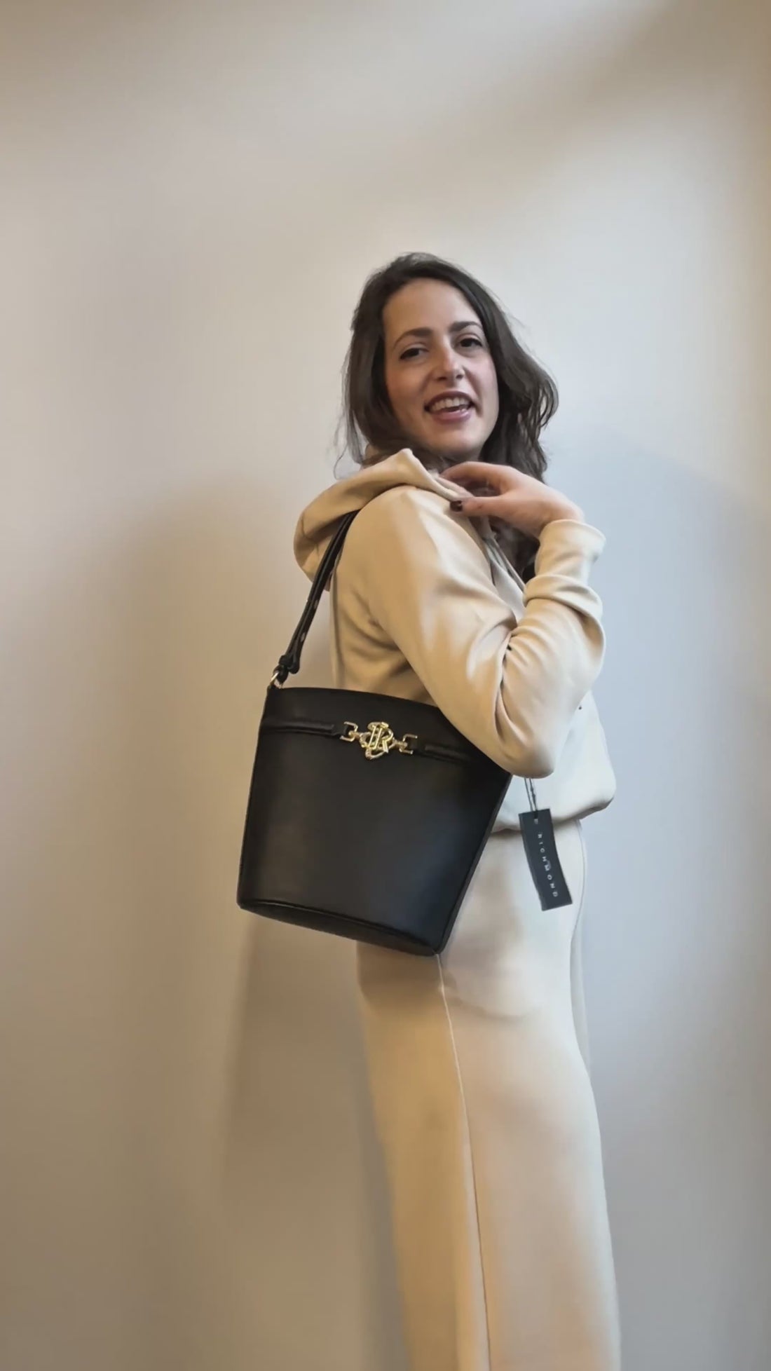 Nannini Firenze Borsa a Spalla Donna in Pelle Marrone con Borchie e Charm