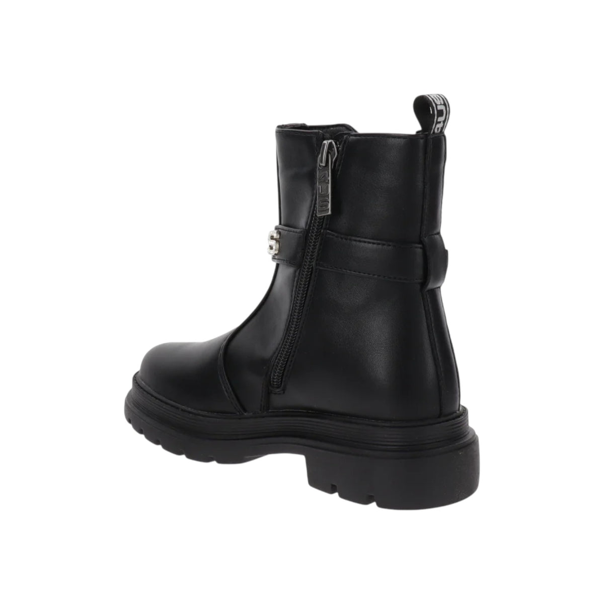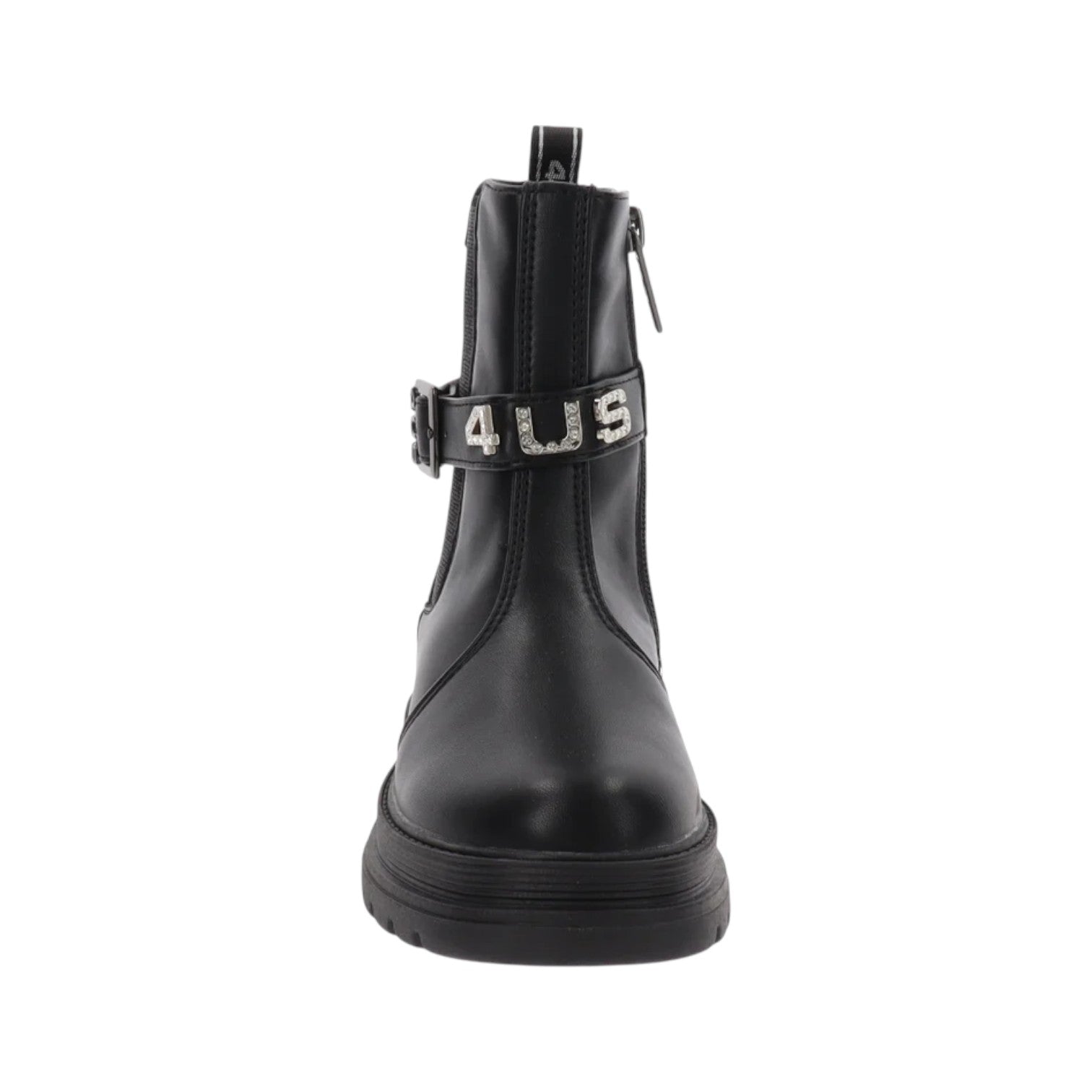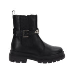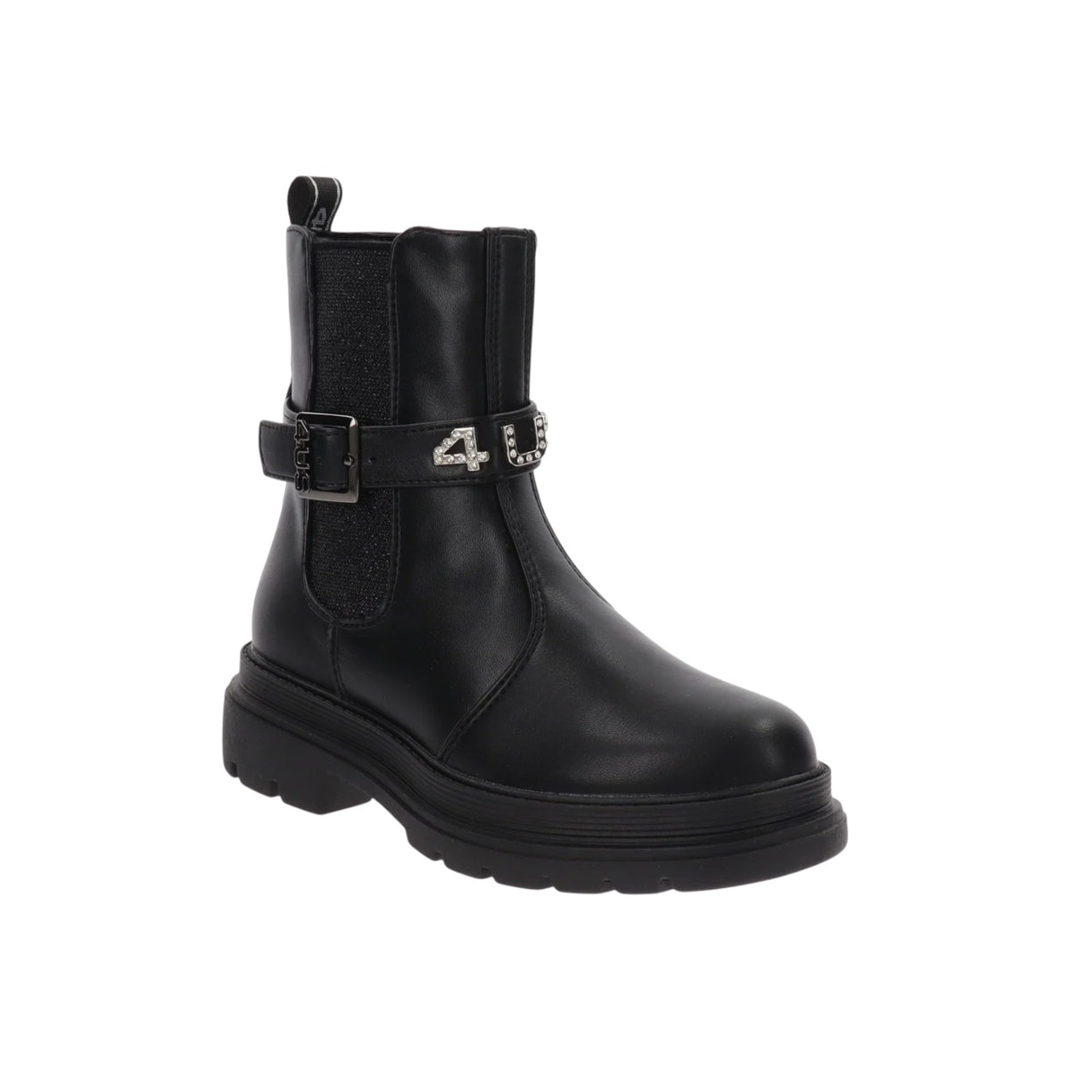 4US Stivaletto Bambina in Ecopelle Nera con Fibbia e Logo Gioiello