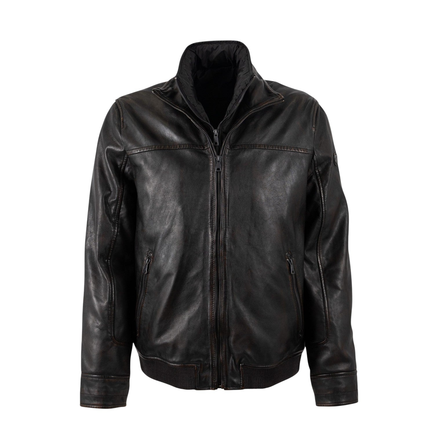Il Giubbotto firmato Mauritius, realizzato in vera pelle nero marrone, offre una vestibilità regolare e un design moderno. Include pratiche tasche laterali per un look pratico e urbano, oltre a un gilet interno removibile, ideale per adattarsi a diverse temperature e occasioni.