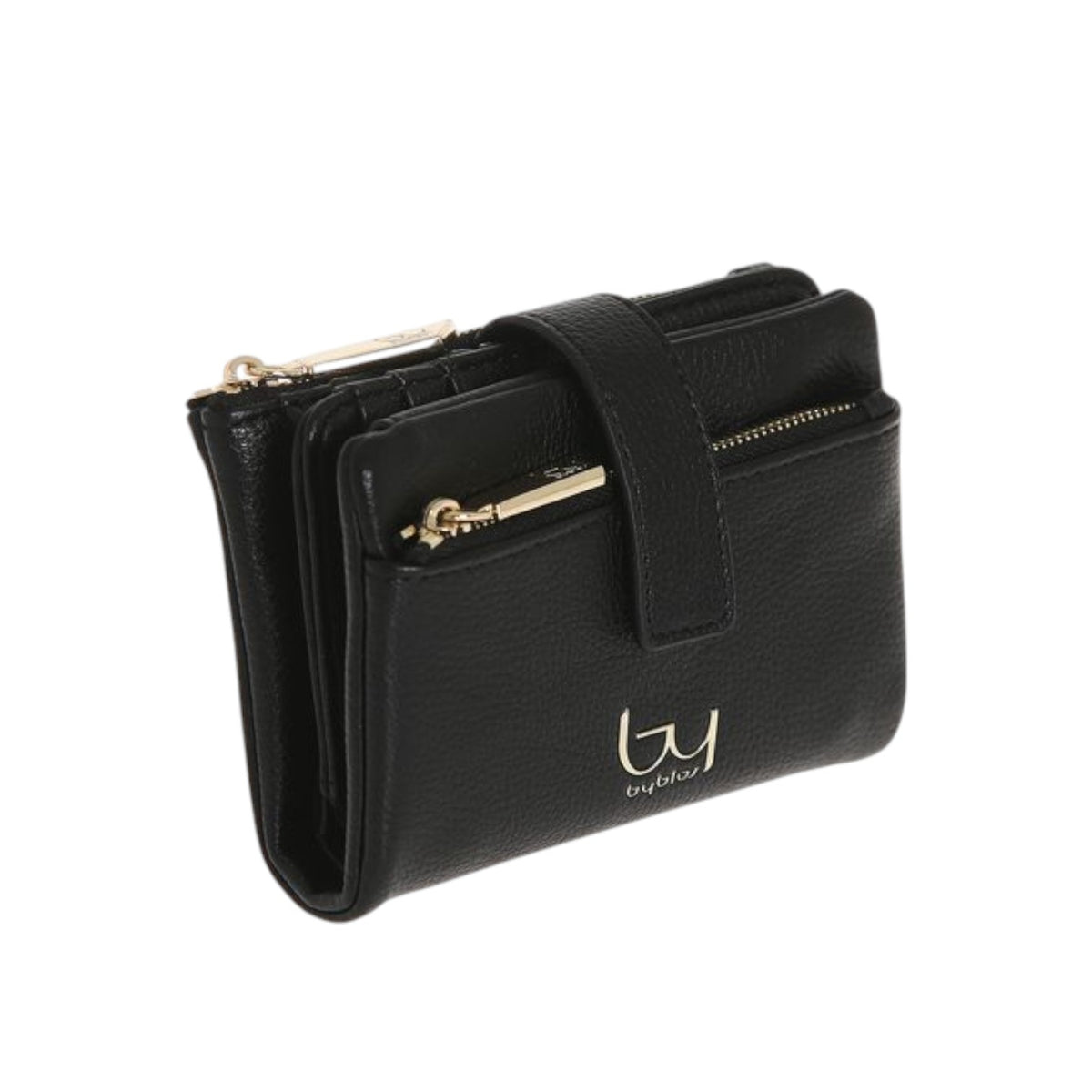 By Byblos Portafoglio Medio Donna in Ecopelle Nera con Linguetta e Bottone