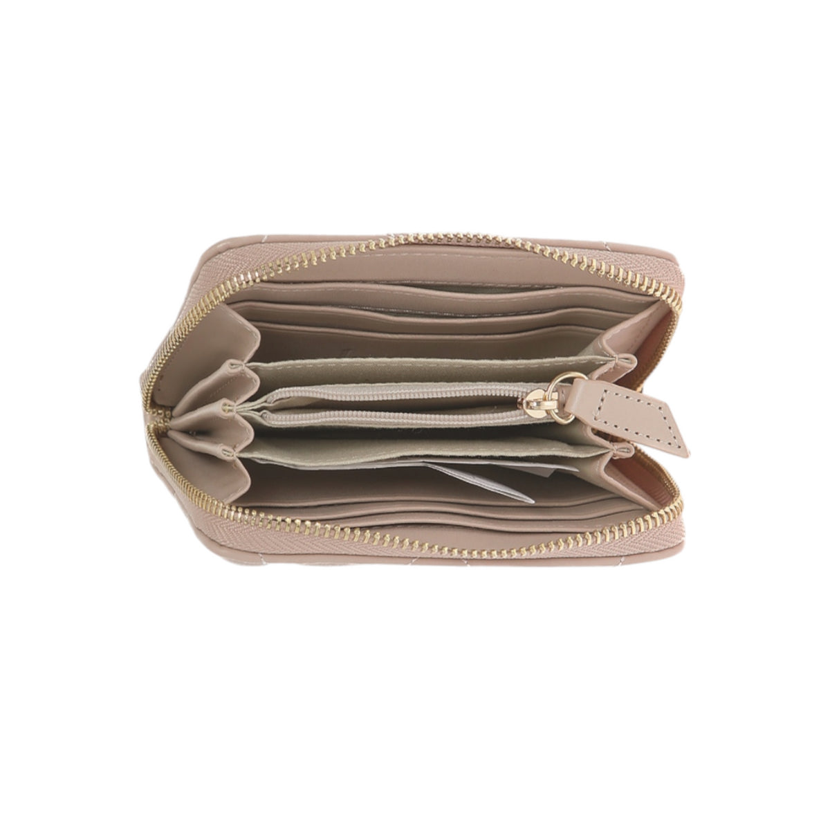 Il Portafoglio firmato By Byblos, realizzato in ecopelle qui proposto nella variante beige è caratterizzata da effetto trapuntato e da apertura con zip all around, di cui presenta 6 slots portatessere e uno scompartimento per banconote e monete.