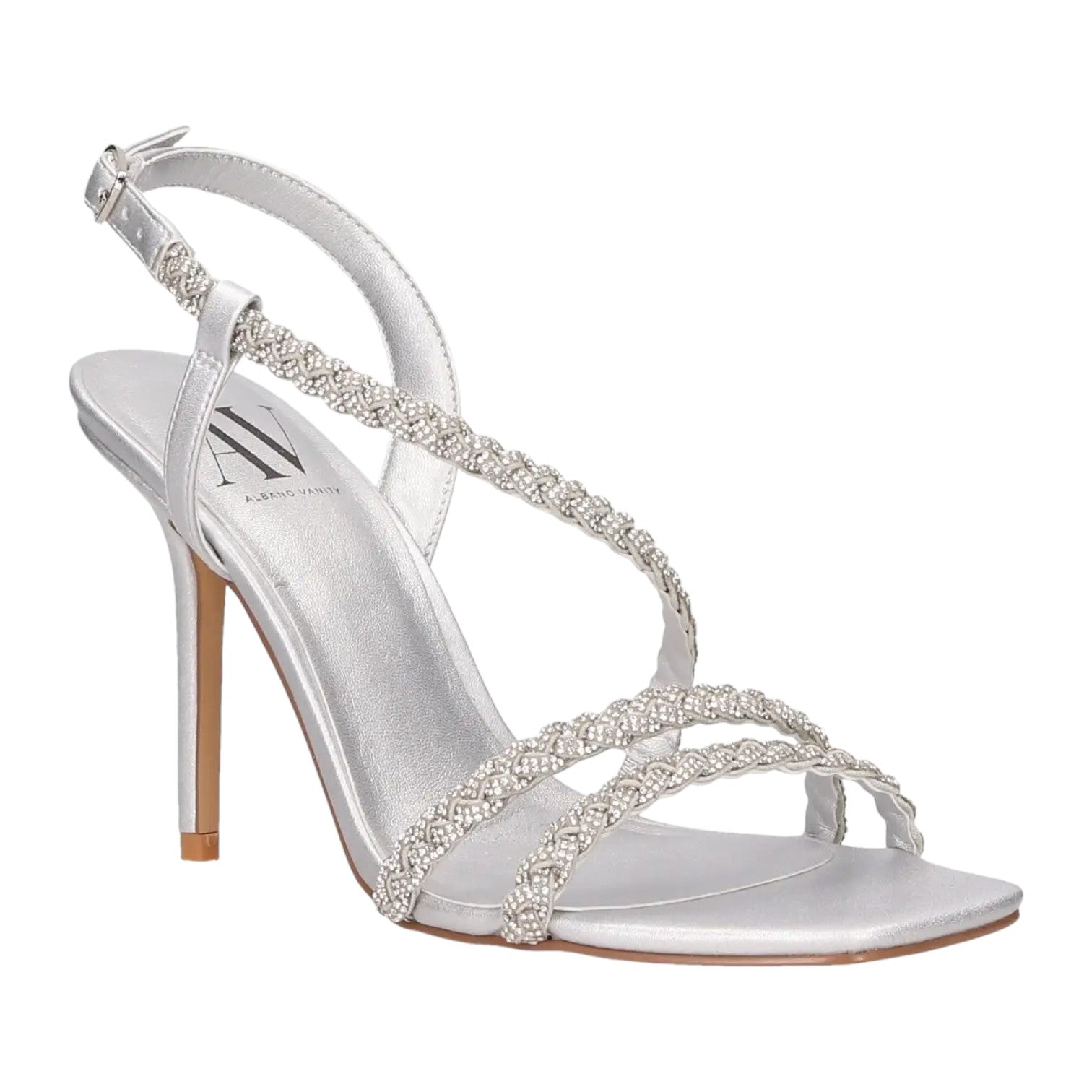 Albano Vanity Sandalo con Tacco a Spillo 100mm Donna con Fasce Intrecciate Strass in Colore Argento