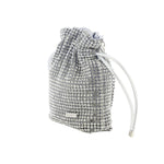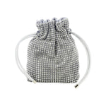 Il Secchiello firmato Albano, dalla texture morbida è realizzata con applicazioni di strass argento all over ed è caratterizzata da interno foderato in tessuto con un unico scomparto singolo e da una chiusura con laccetti, la borsa inoltre puó essere portata a spalla con una catena dorata removibile.