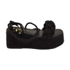 Il Sandalo firmato Altrimenti, realizzato in tessuto presenta una fantasia intrecciata e una chiusura con lacci alla schiava alla caviglia. Con una zeppa di 7cm questo sandalo è perfetto per ogni donna che quest'estate cerca un'opzione elegante e moderna.
