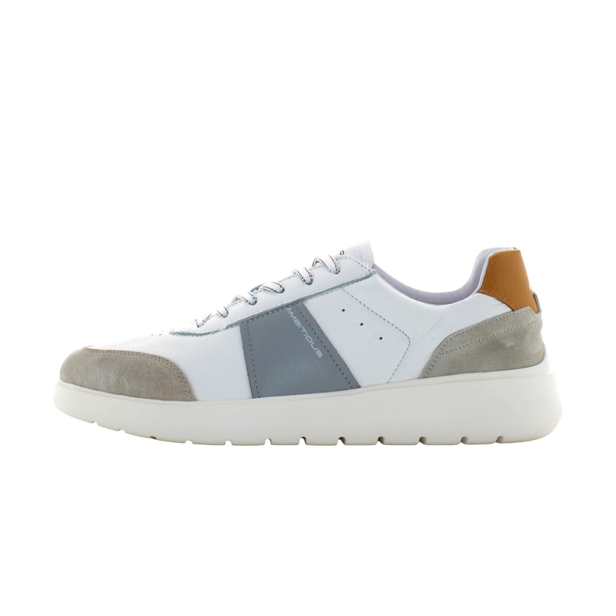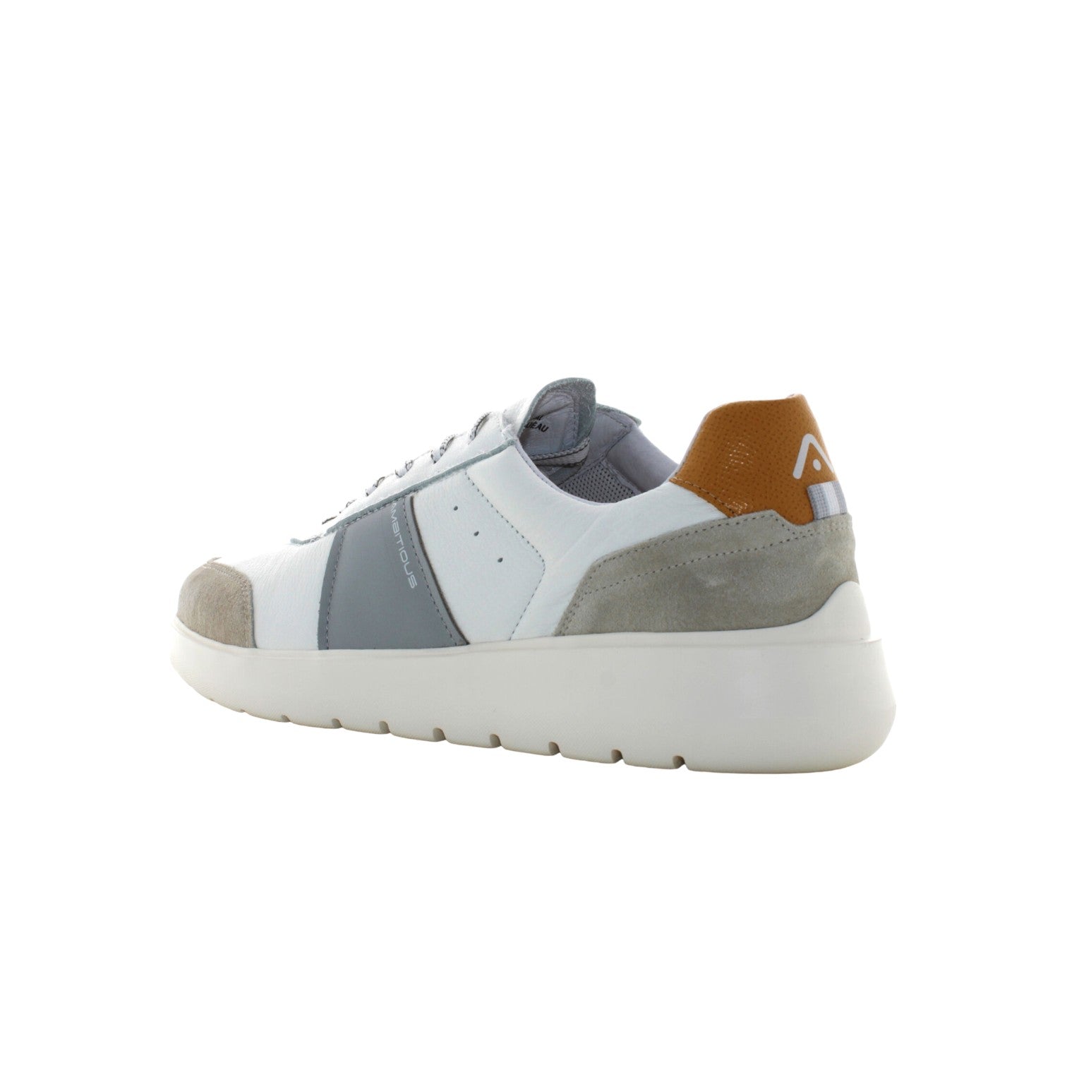 La Sneaker firmata Ambitious della linea Hover è una scarpa incentrata sul fornire il massimo comfort e benessere all'utente, grazie alla tecnologia brevettata della sua suola in EVA che aumenta la flessibilità e l'assorbimento di energia. Versione con combinazione di pelle e camoscio e pannelli colorati sul lato e sul retro.