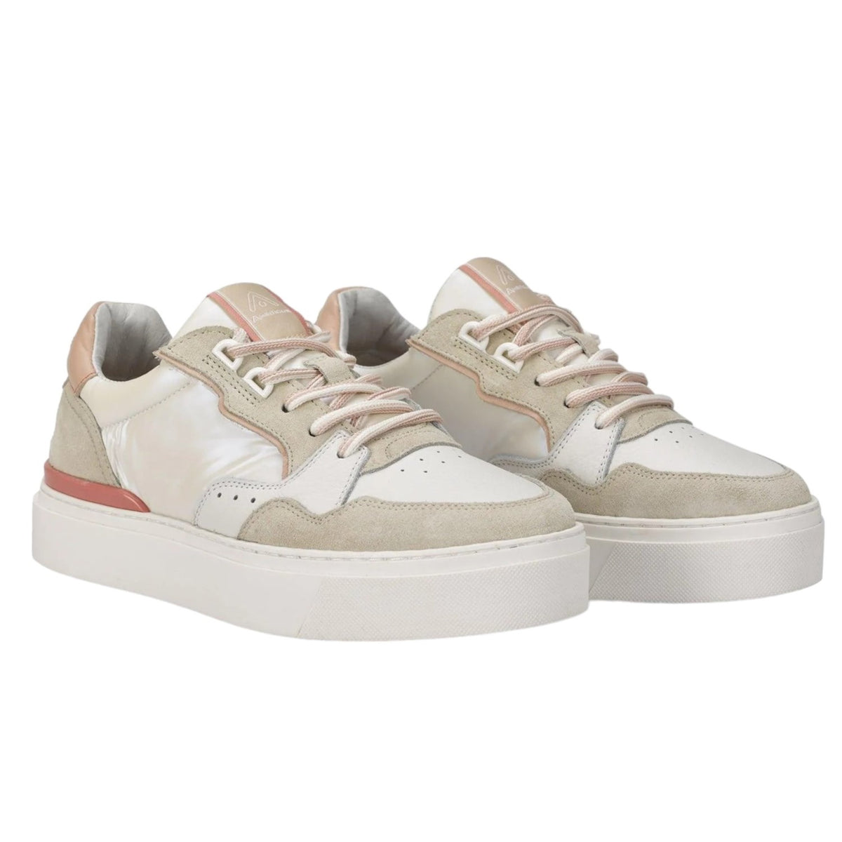 La Sneaker firmata Ambitious della linea Lisa, è una low-top ispirata al basket con un'espressiva suola in gomma. Combinazione di pelle, camoscio e tessuto tecnico con effetti metallizzati.
