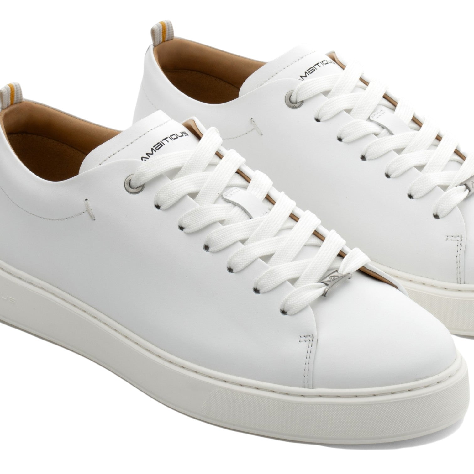 La Sneakers firmata Ambitious, realizzata in pelle bianca versatile che si adatta ad ogni occasione. Una silhouette senza tempo, materiali di alta qualità e una suola in EVA ultraleggera e confortevole per la tua vita di tutti i giorni.