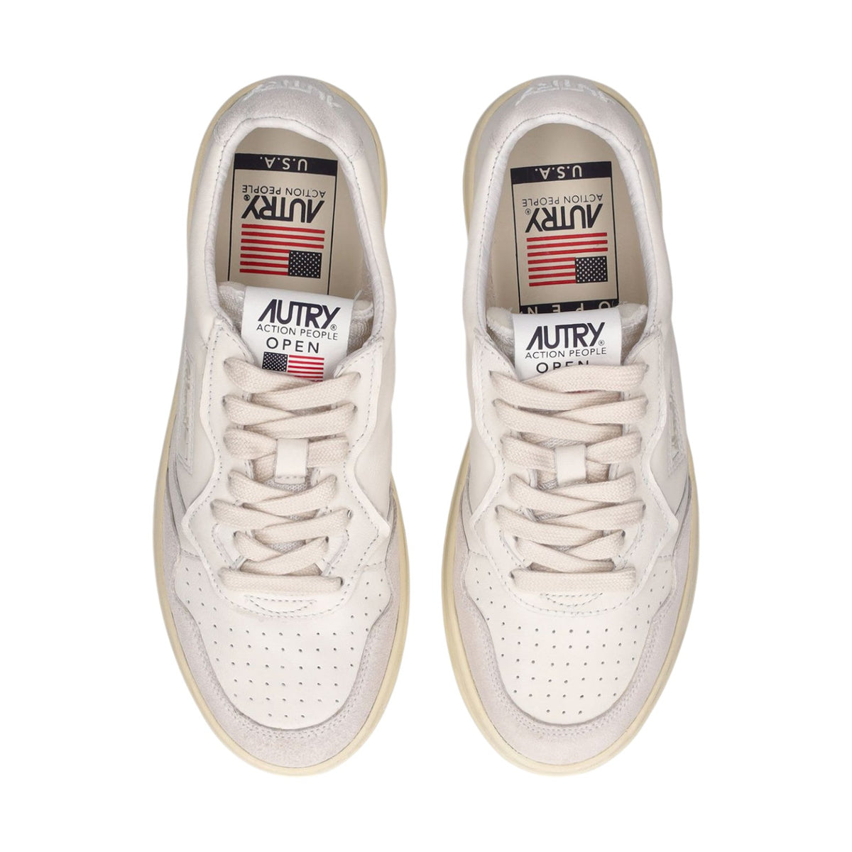 La Sneakers firmata Autry, realizzata in pelle bianca morbida rifinita con la lavorazione a microfori sulla punta che offre un'ottima traspirabilità. Caratterizzata da inserti in camoscio e da fodera in pelle e spugna di cotone e soletta in pelle rialzata di 2cm.