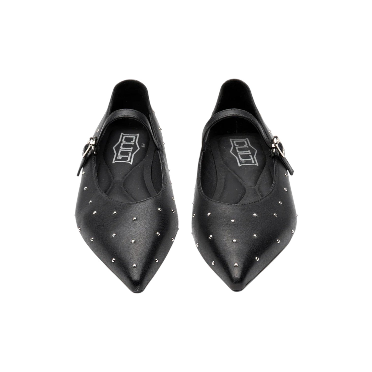 Cult Ballerina Donna a Punta Nera con Cinturino e Borchie