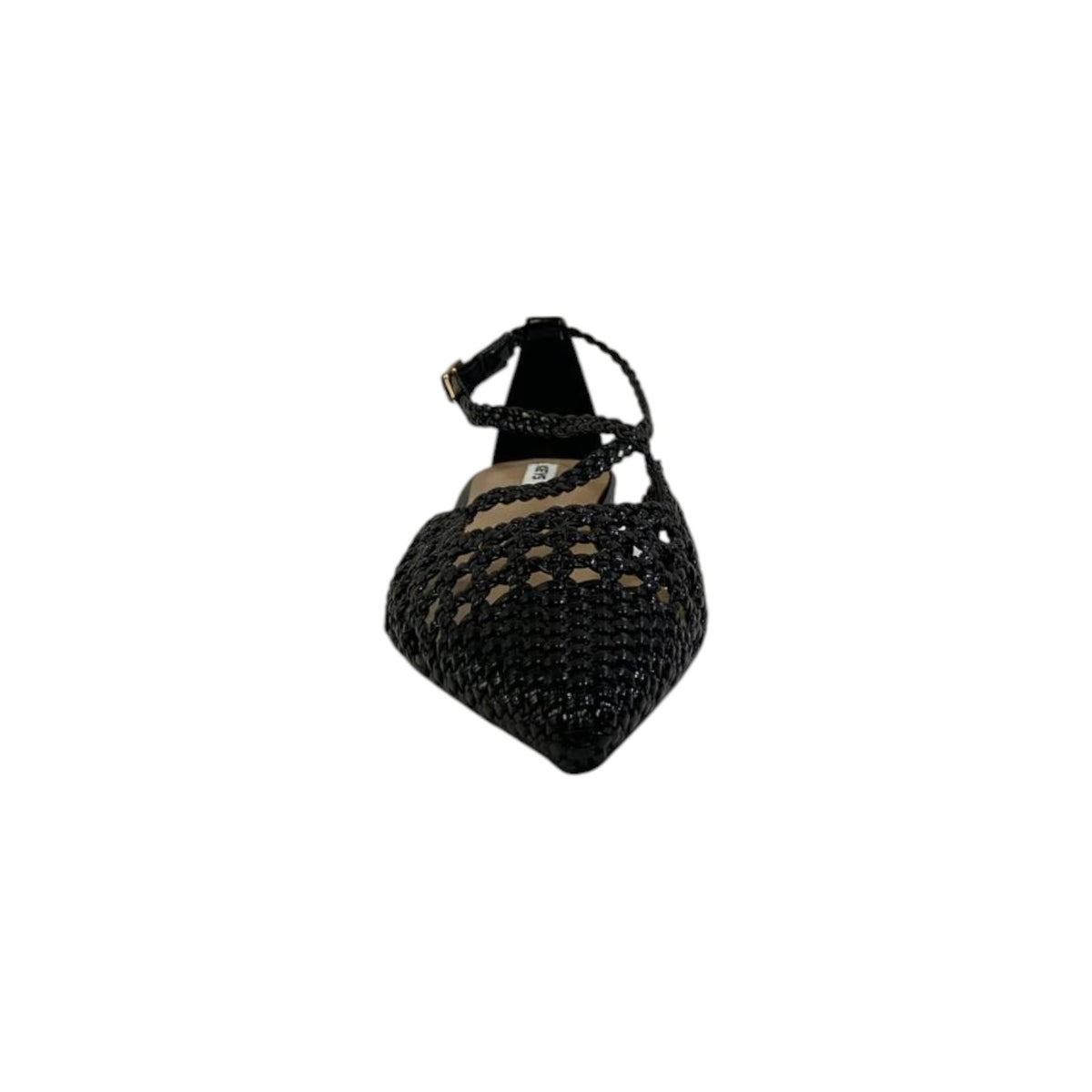 Keys Ballerina Donna in Ecopelle Nera Intrecciata con Cinturino e Tacco Basso 25mm