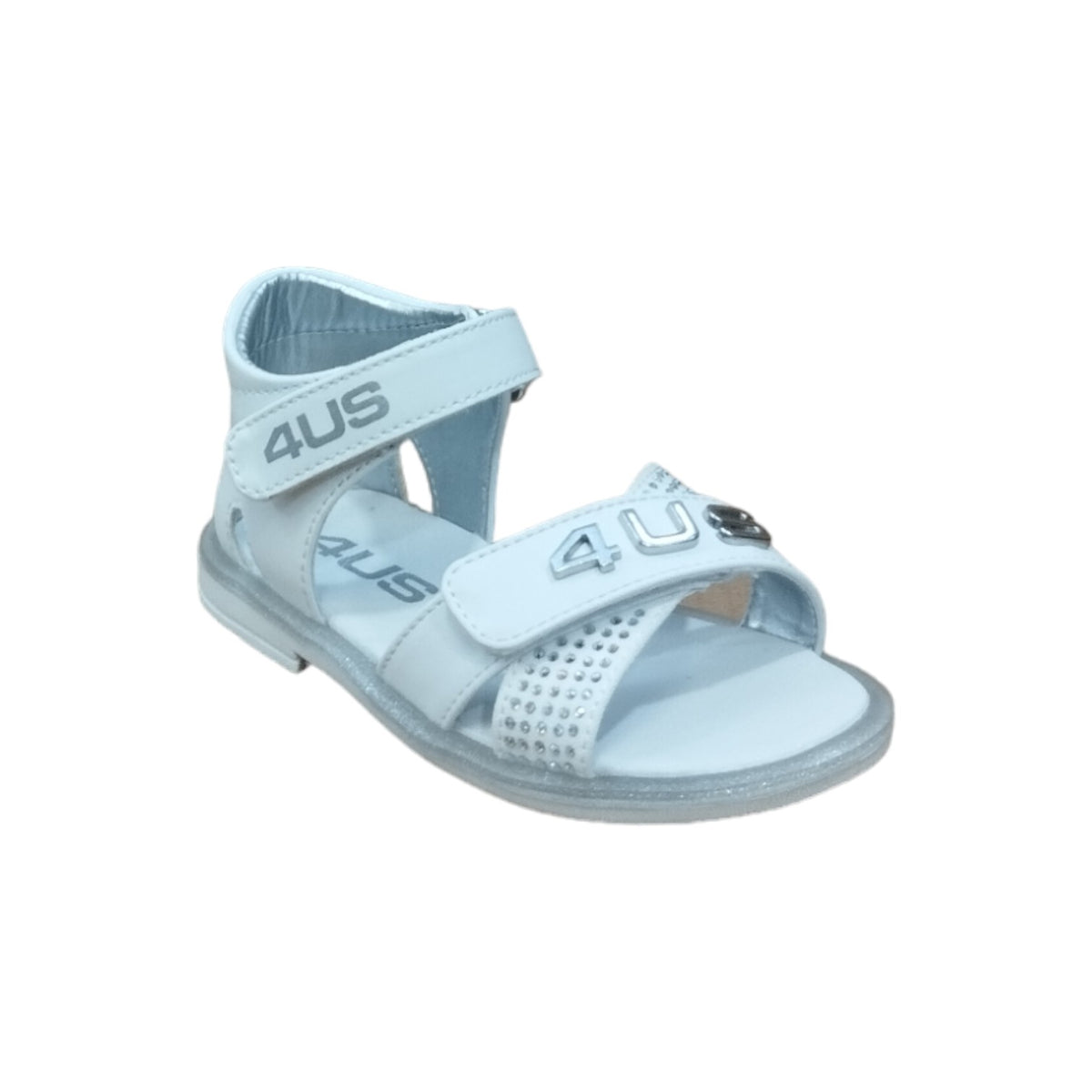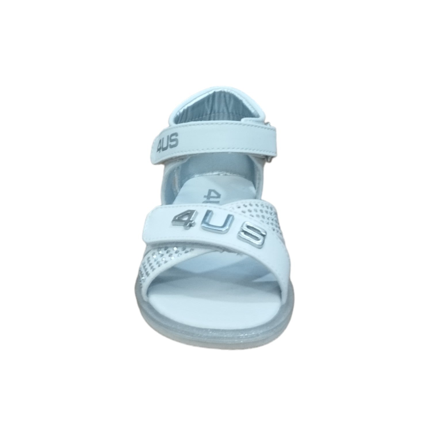 4us Sandalo Bianco con Strappo e Applicazione Strass da Bambina