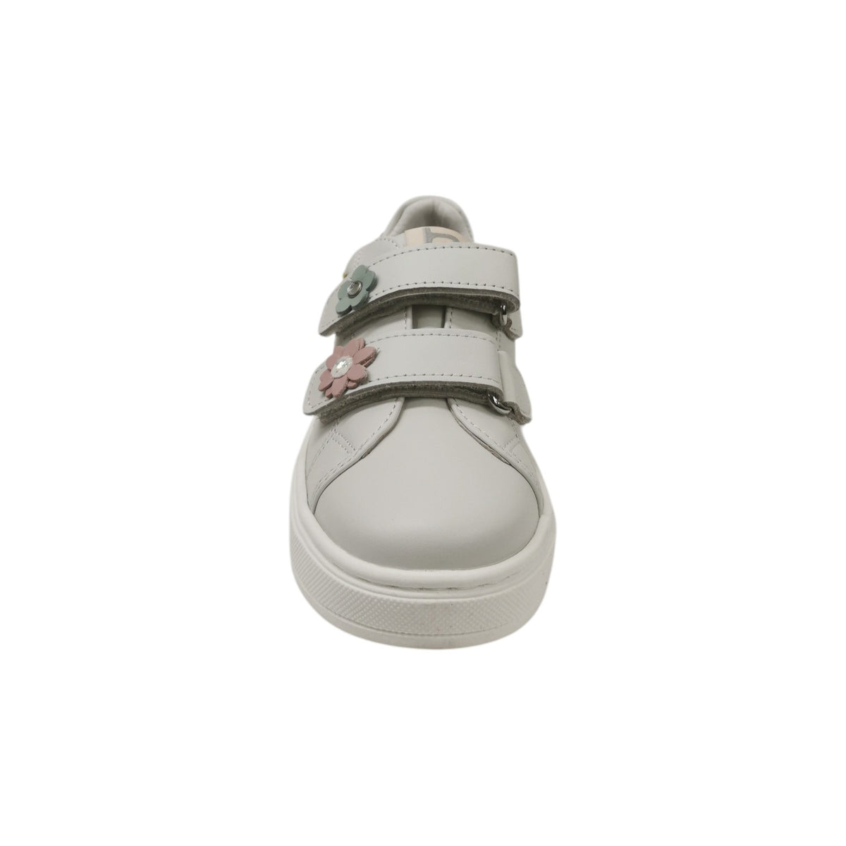 La Sneakers firmata Balducci, realizzata in pelle qui proposta nella variante bianca è caratterizzata da una comoda chiusura con doppio strappo di cui sono applicati dei fiorellini multicolor, l'interno ed il sottopiede sono foderati in pelle.