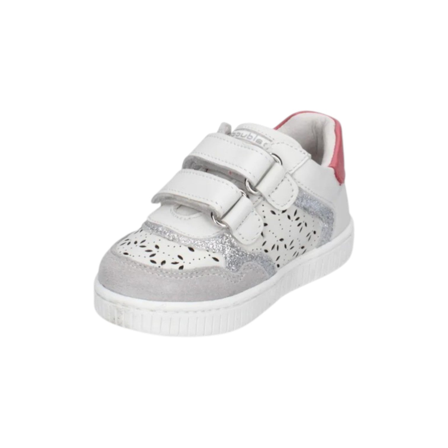 La Sneakers firmata Balducci, realizzata in pelle pensata per unire comfort, qualità e un tocco di allegria. Il modello presenta una tomaia con eleganti inserti e delicate lavorazioni traforate che favoriscono la traspirazione del piede. I piccoli fiori colorati applicati lateralmente donano alla scarpa uno stile vivace e femminile, perfetto per accompagnare ogni outfit delle più piccole.