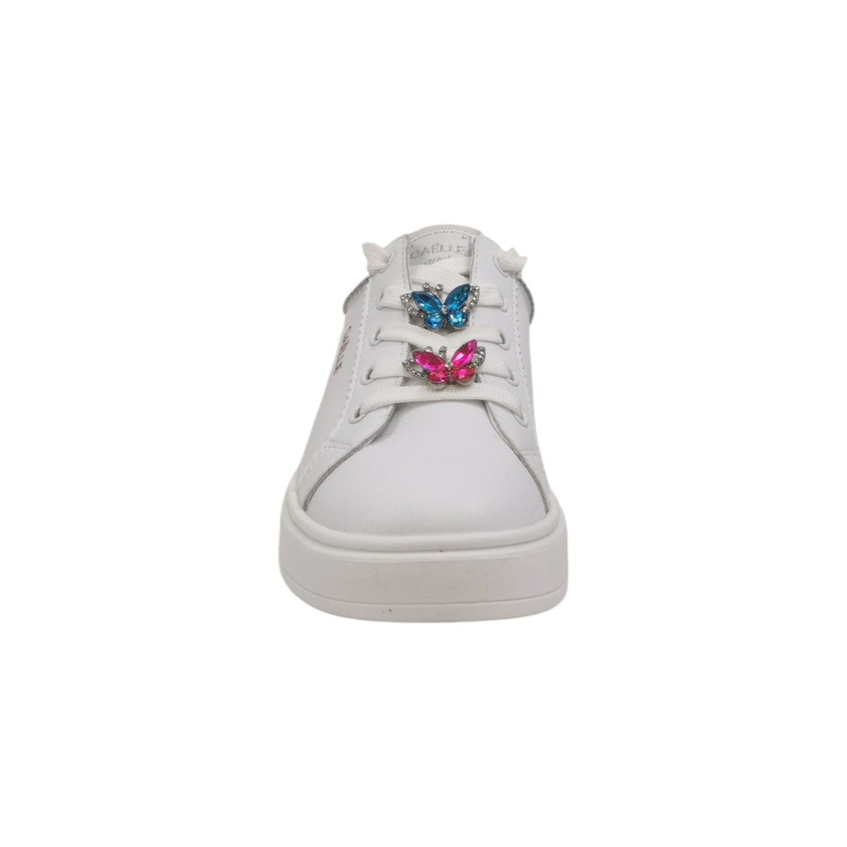 La Sneakers firmata Gaelle, caratterizzata da accessori a farfalla gioiello removibili sui lacci di grande qualità ed hanno il tipico tocco di stile Gaelle, realizzata con fodera e sottopiede in pelle permettono una elevata traspirazione regalando tanta freschezza.