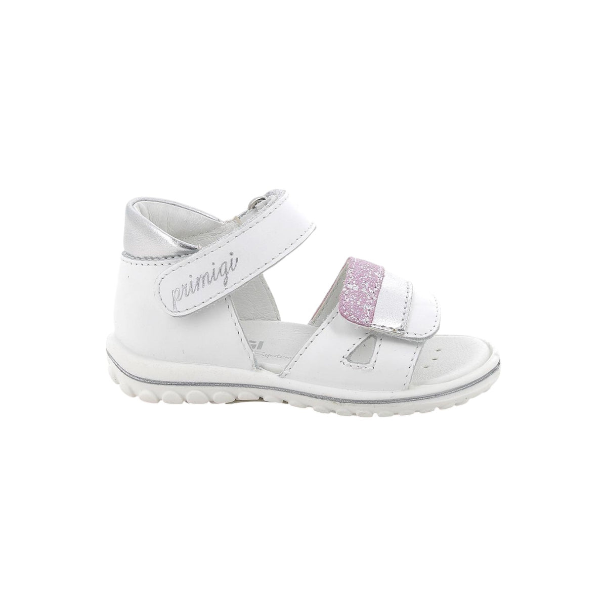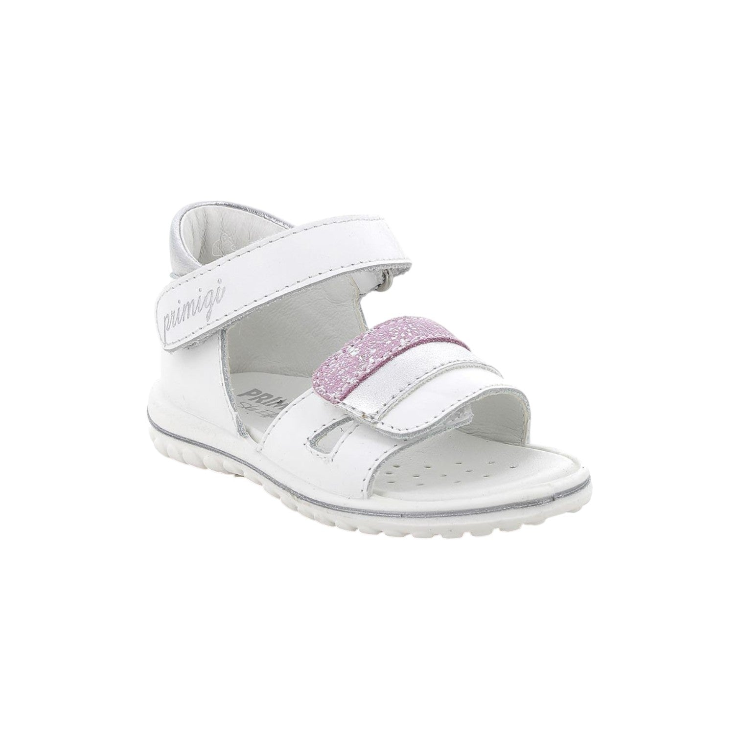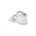Il Sandalo firmato Primigi, realizzato in pelle bianca con dettagli lilla e argento è caratterizzato da doppio strappo, l'ampia fascia anteriore ed il tallone strutturato assicurano tenuta e sostegno ottimali, mentre le dita godono di piena libertà. La morbidezza dei materiali scelti per la tomaia e per la suola li rende perfetti per l'estate. Li completa un rivestimento interno in pelle per agevolare la traspirazione e garantire igiene.