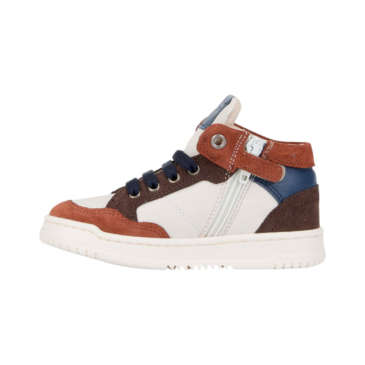 La Sneakers firmata Balducci realizzata in pelle e suede, con un energico gioco di colori caldi e una stella laterale che firma ogni passo. Il taglio alto sostiene la caviglia, mentre la chiusura con zip interna semplifica la calzata. Ideale per correre, saltare, esplorare. Ogni giorno, un’avventura.