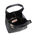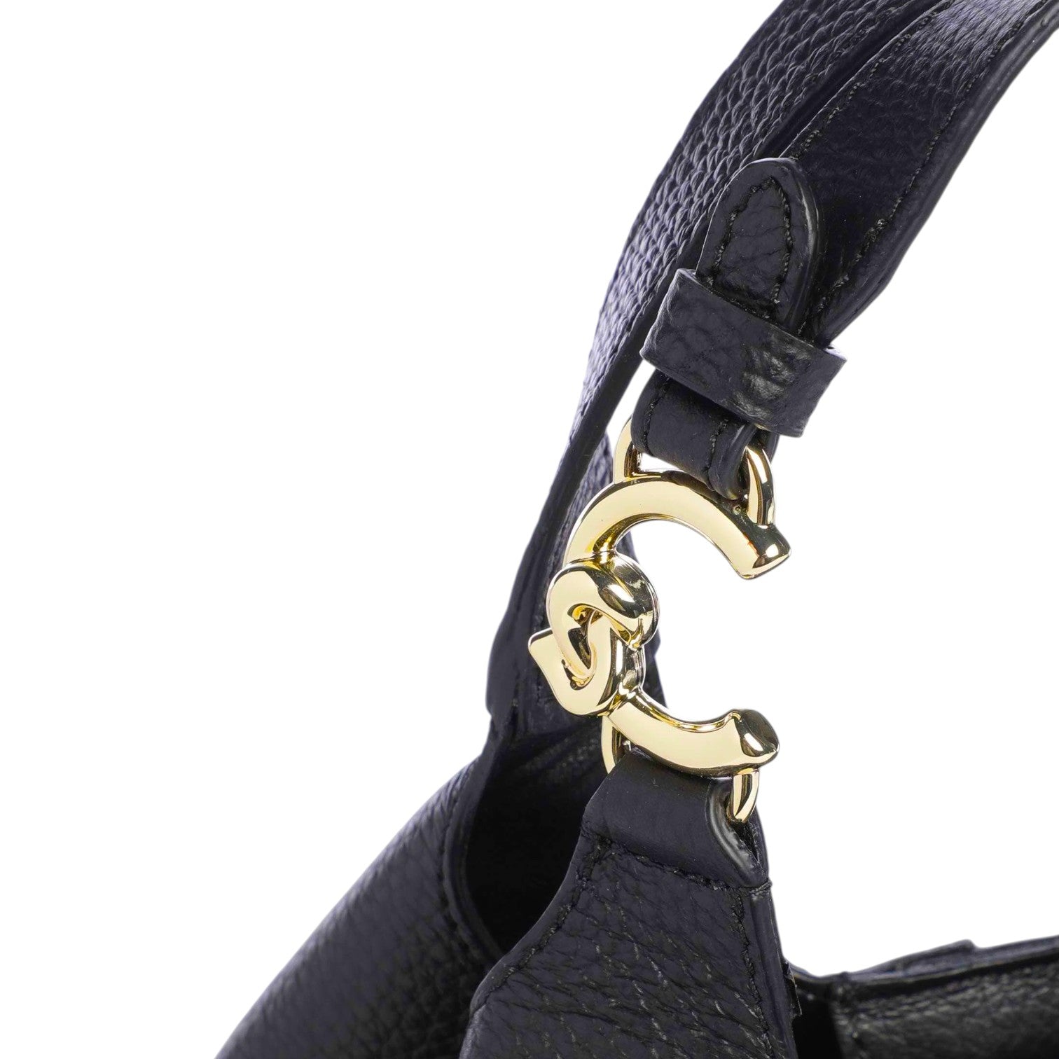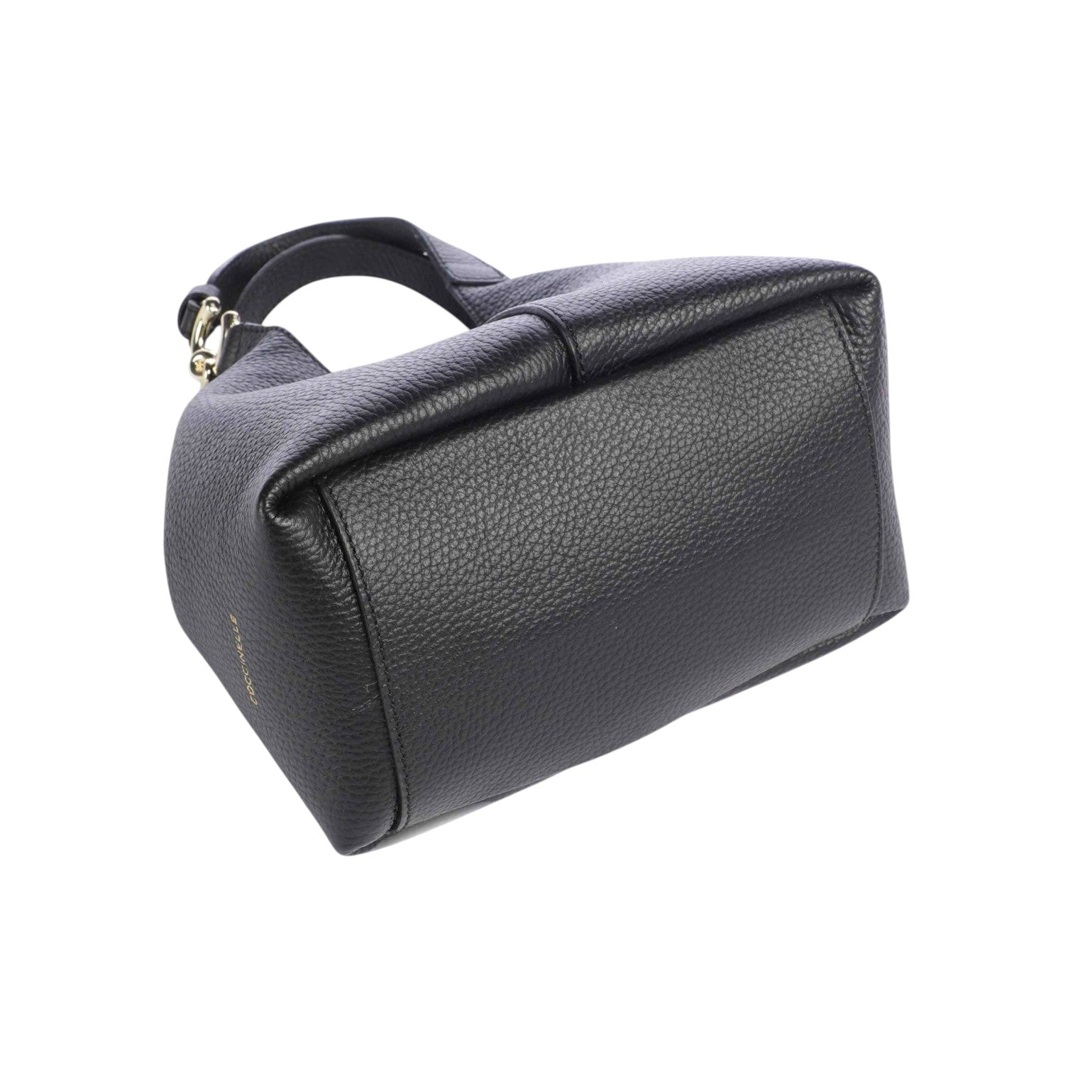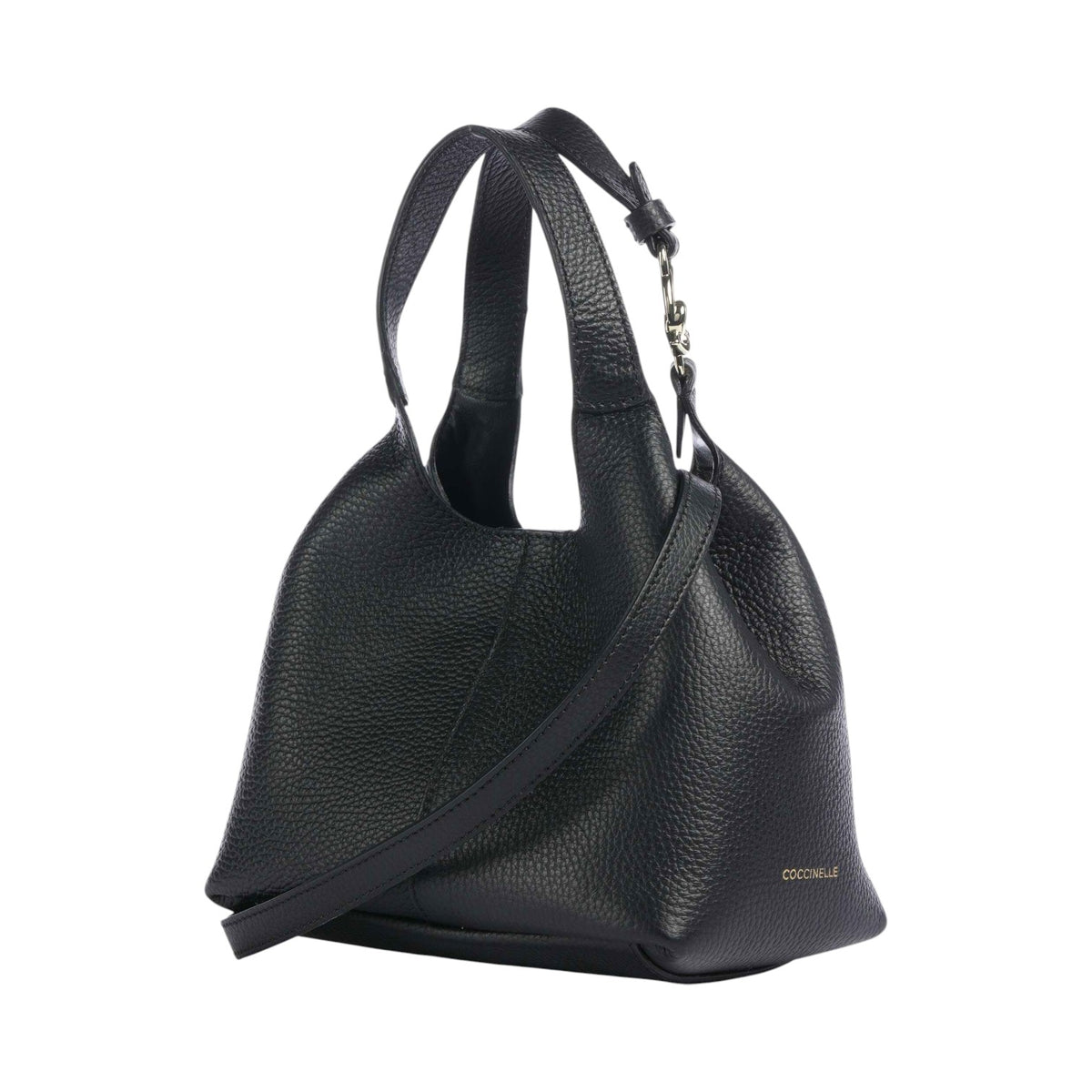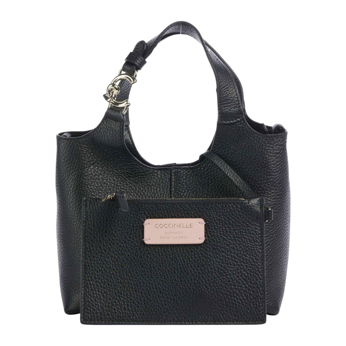 La Borsa a mano firmata Coccinelle, modello da portare anche a tracolla realizzata in vera pelle martellata qui proposta nella variante nera è caratterizzata da dettaglio metallico dorato sul manico e da pochette piatta removibile chiusa con zip. Una scelta versatile che eleva qualsiasi outfit con stile e raffinatezza.