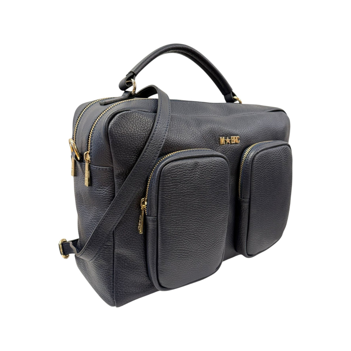 La Borsa a mano firmata M Brc, della Linea Voyager realizzata in pelle di alta qualità con chiusura superiore a zip. Da indossare a spalla oppure per un look più casual e dinamico basta agganciare la tracolla lunga regolabile. Presenta dei tasconi frontali chiusi con zip all'interno tasca con zip.