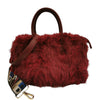 M Brc Borsa a Mano Media Donna Linea Glam in Pelliccia Sintetica Bordeaux con Doppia Tracolla