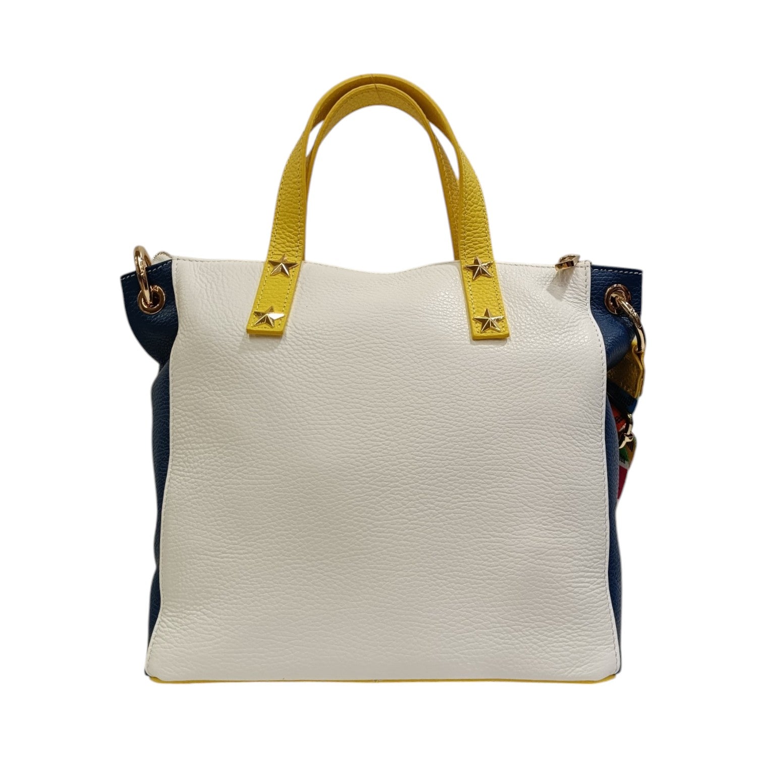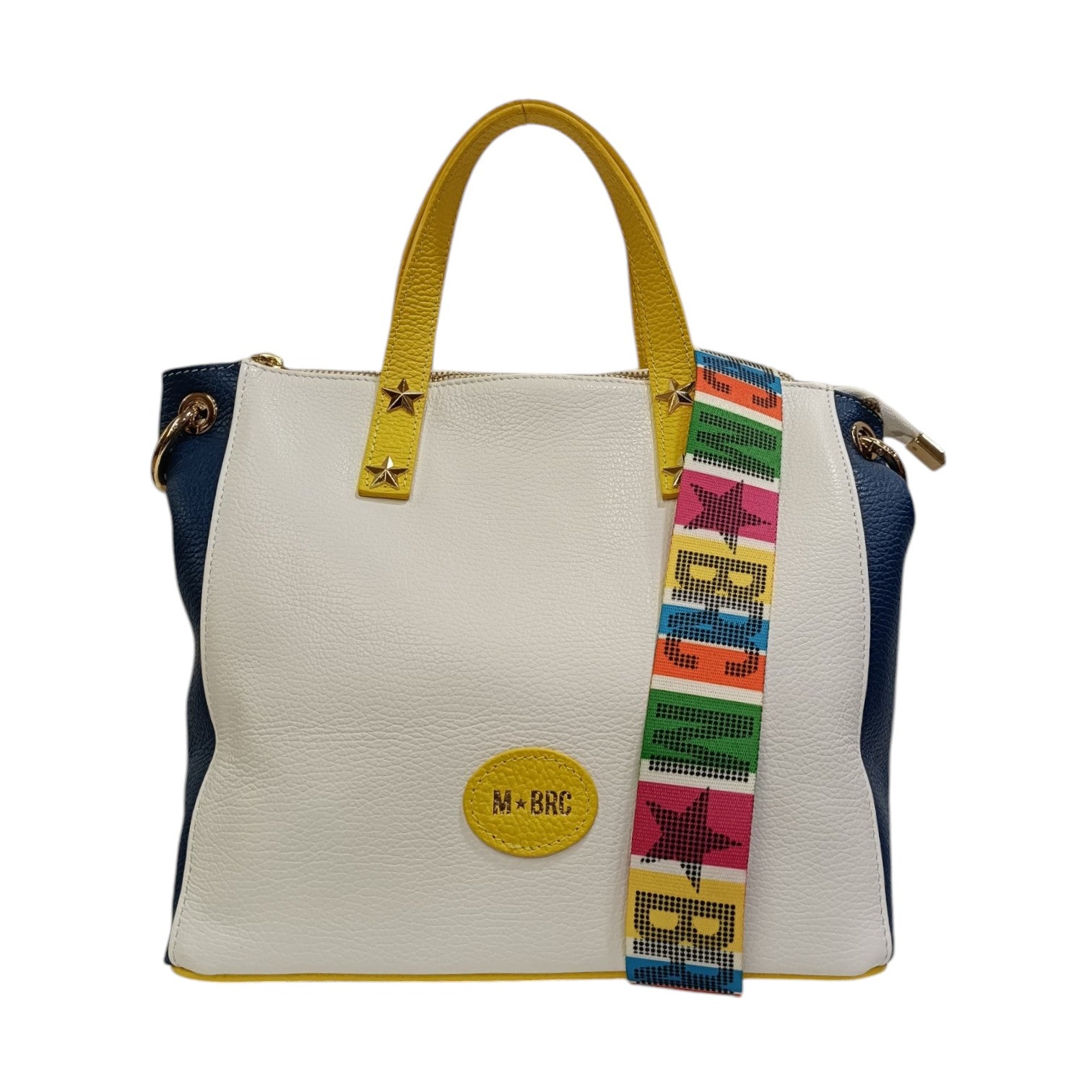 M Brc Borsa a Mano S Donna in Pelle Bianca Multi con Tracolla Logo Lettering Multicolor