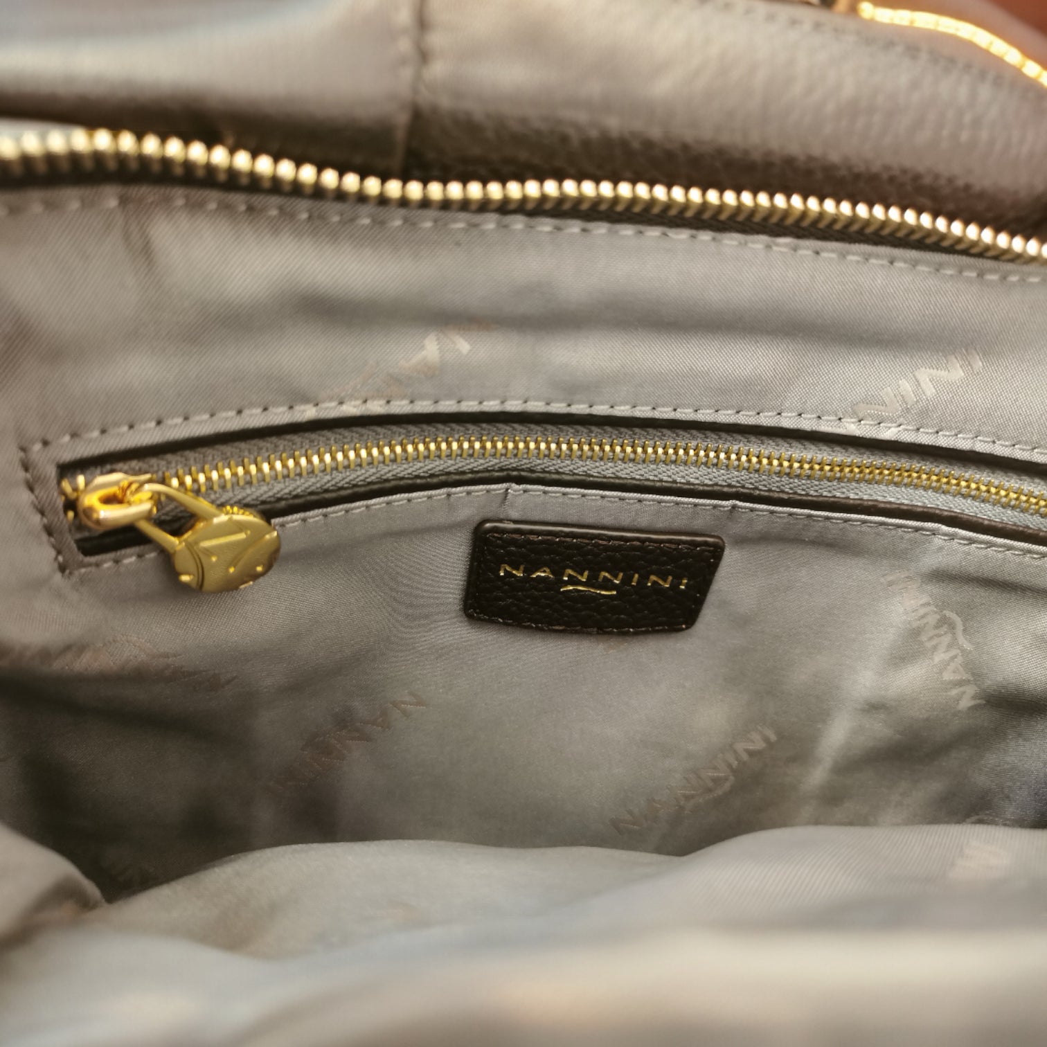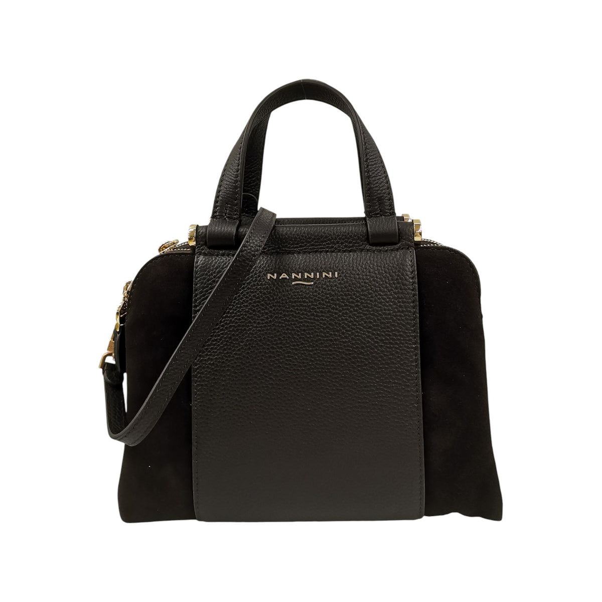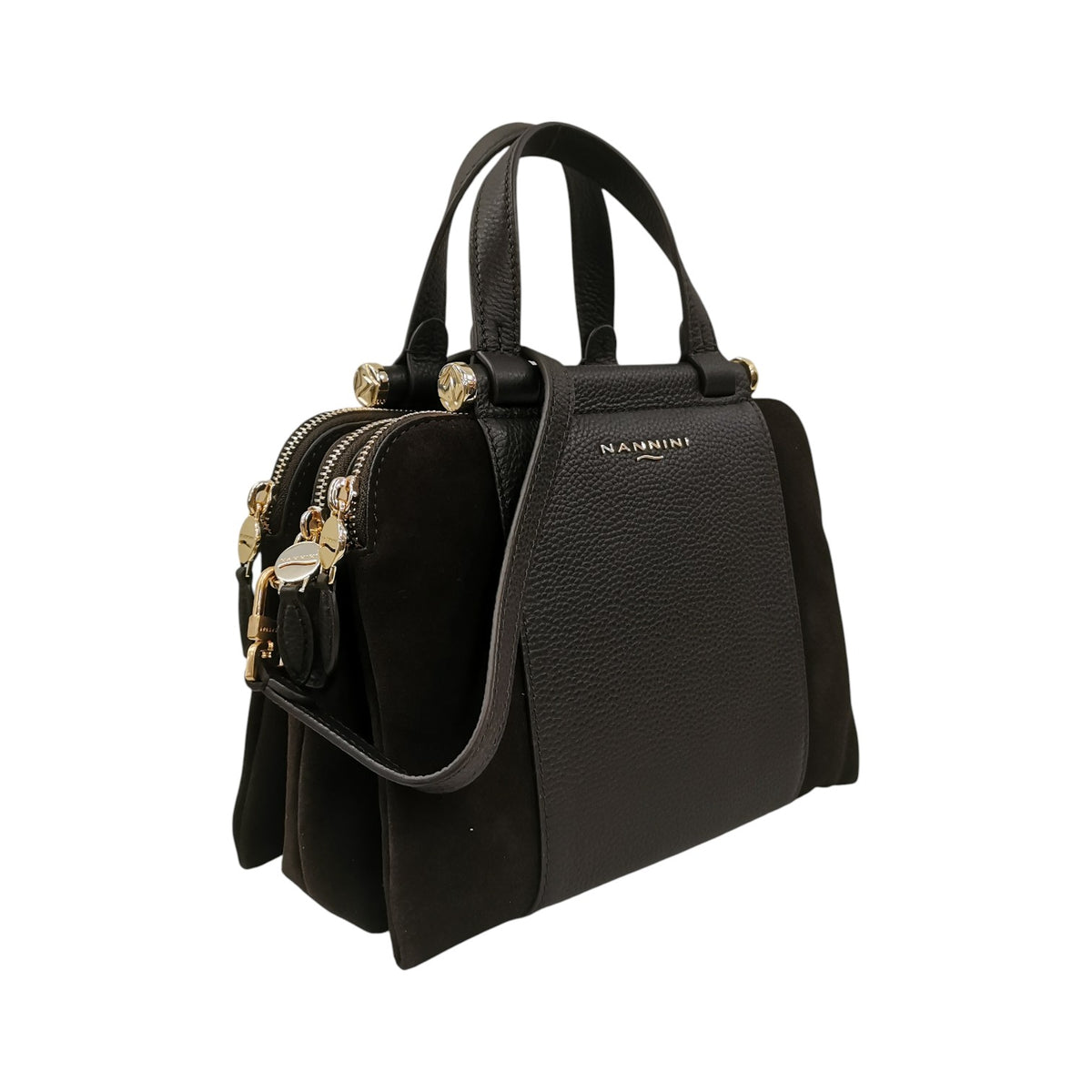 Nannini Firenze Borsa a Mano Piccola Febe Donna in Pelle e Camoscio Sigaro con Tre Scomparti