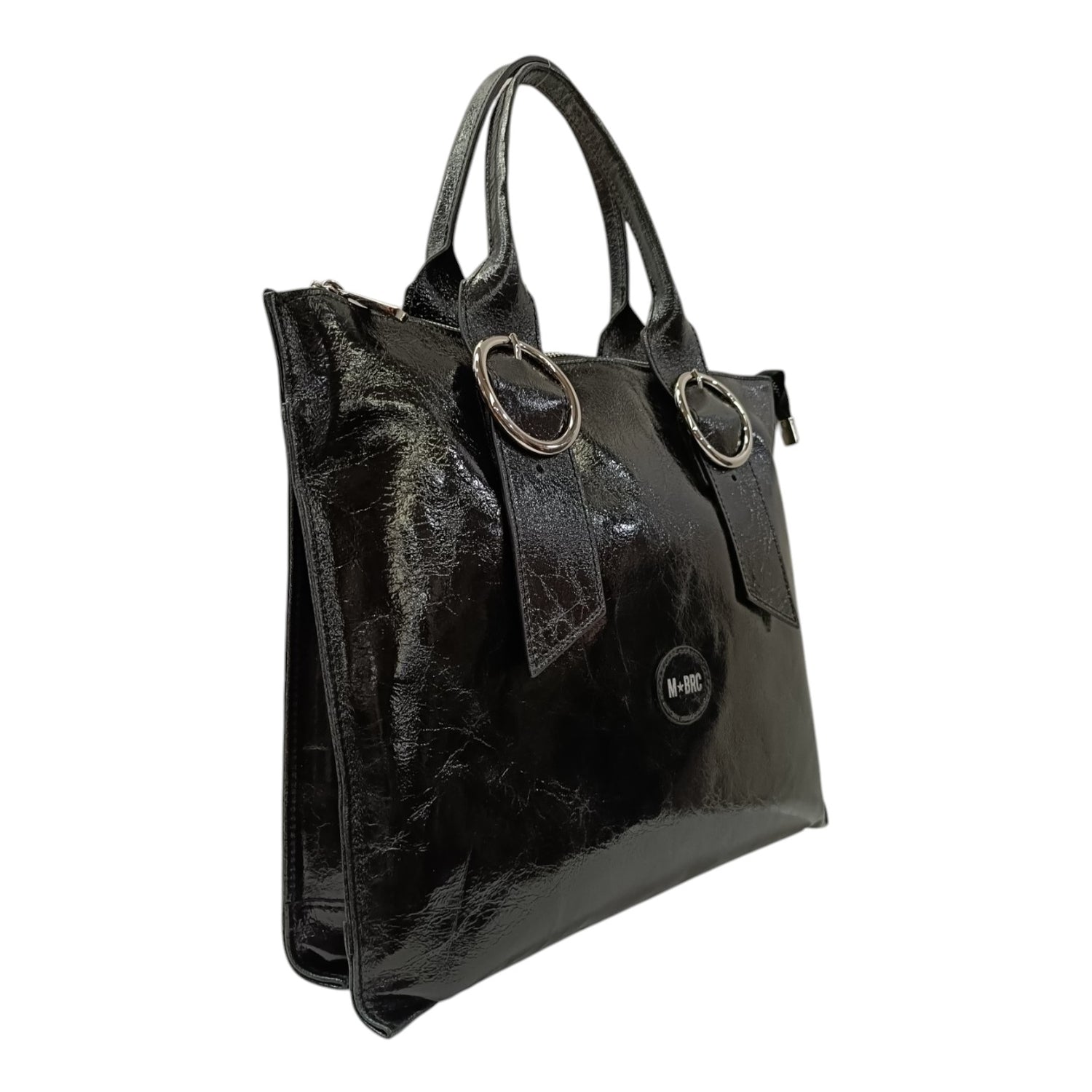 La Borsa a mano firmata Caleidos, si distingue per la sua finitura lucida color nero, capace di aggiungere un tocco di classe ad ogni outfit, dal look da ufficio alle occasioni serali. Il design strutturato con doppio manico garantisce praticità e comfort, mentre i dettagli in metallo dorato esaltano il carattere lussuoso della borsa. La chiusura con zip superiore mantiene i tuoi oggetti personali al sicuro, offrendo al tempo stesso uno spazio interno ben organizzato.