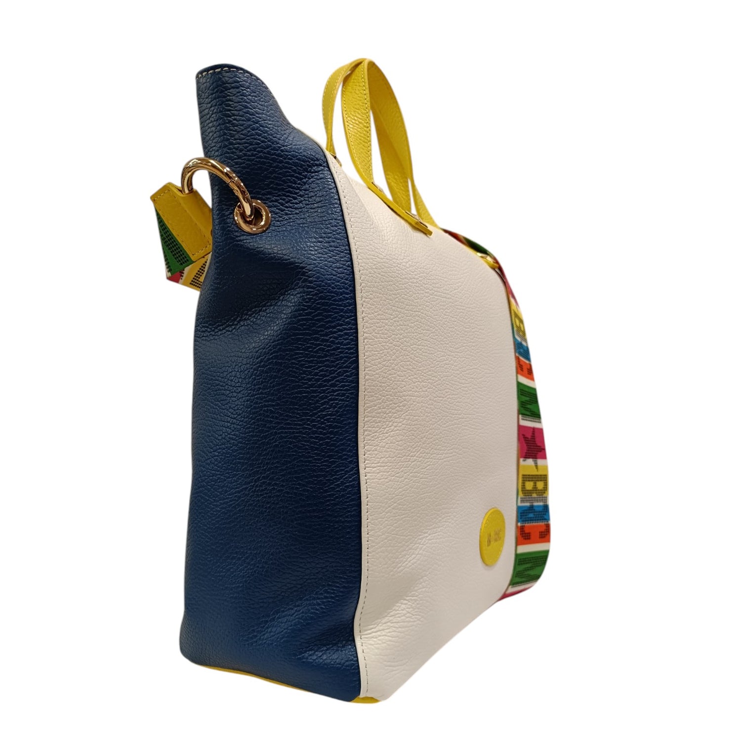 La Borsa a mano firmata Caleidos, realizzata in vera pelle qui proposta nella variante nero multi è caratterizzata da comoda tracolla regolabile e removibile per portarla a spalla e da contrasti di colore, l'interno è suddiviso in doppio scomparto di cui quello centrale chiuso con zip. Un accessorio indispensabile per chi cerca design raffinato e praticità quotidiana.