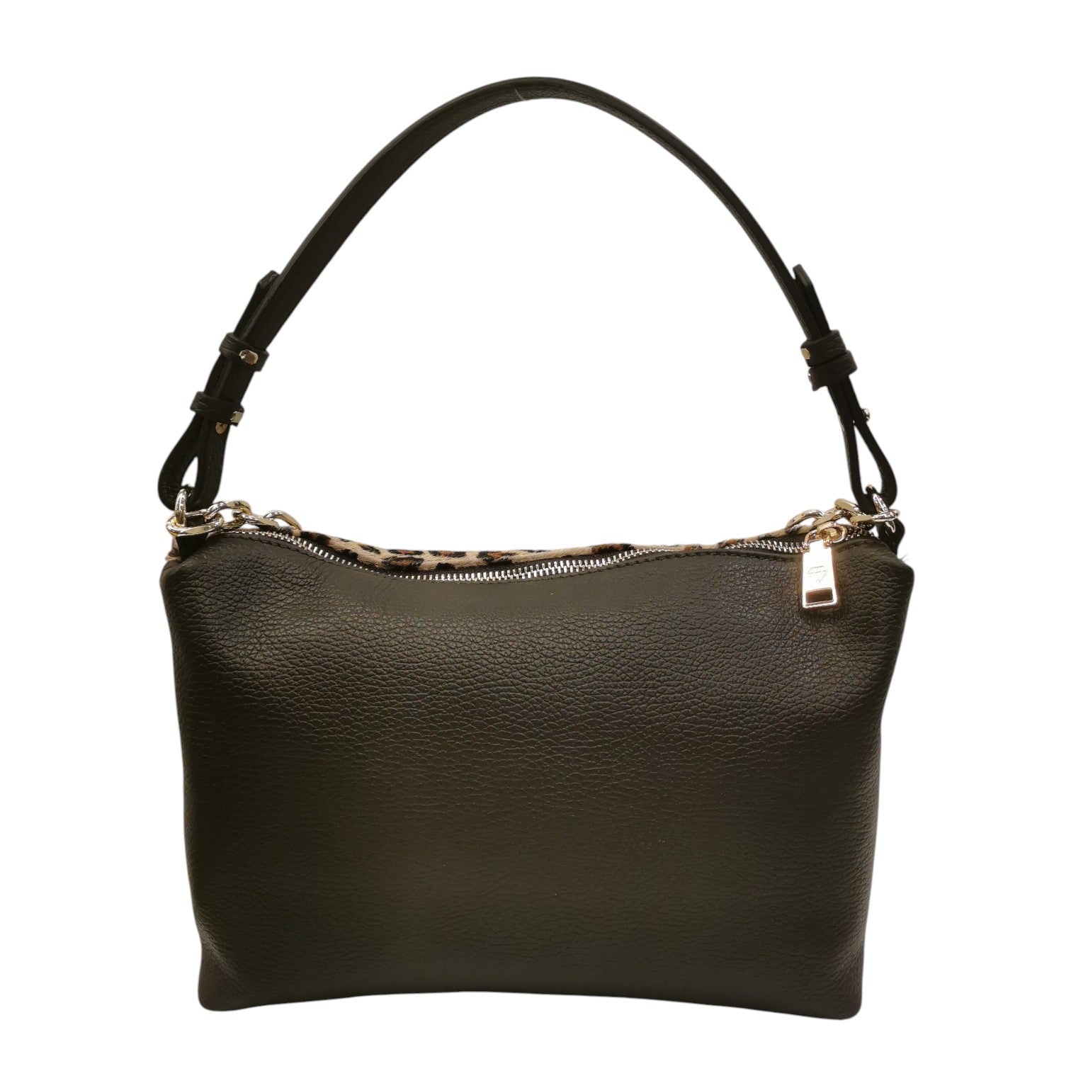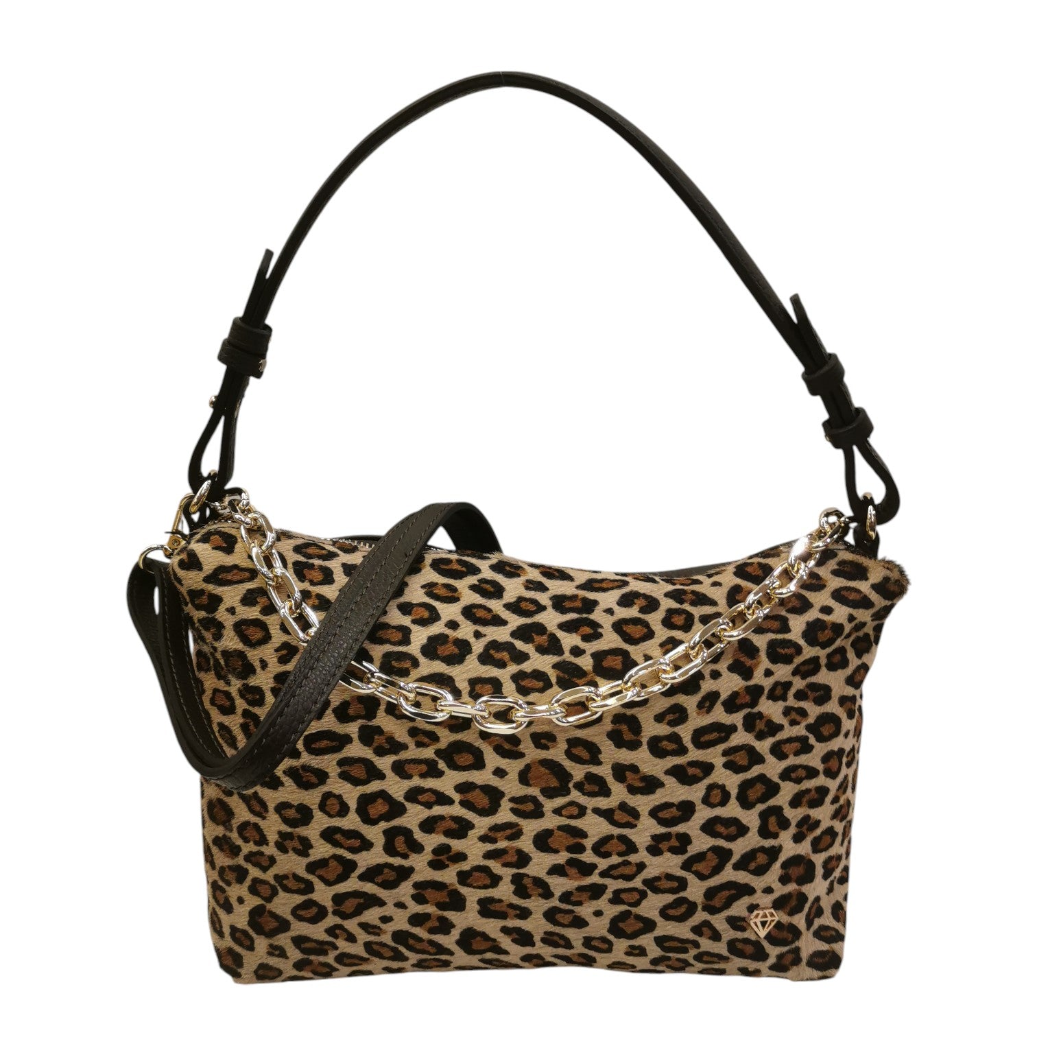 Caleidos Borsa a Spalla Donna in Pelle Marrone con Stampa Leopardata e Catena Oro