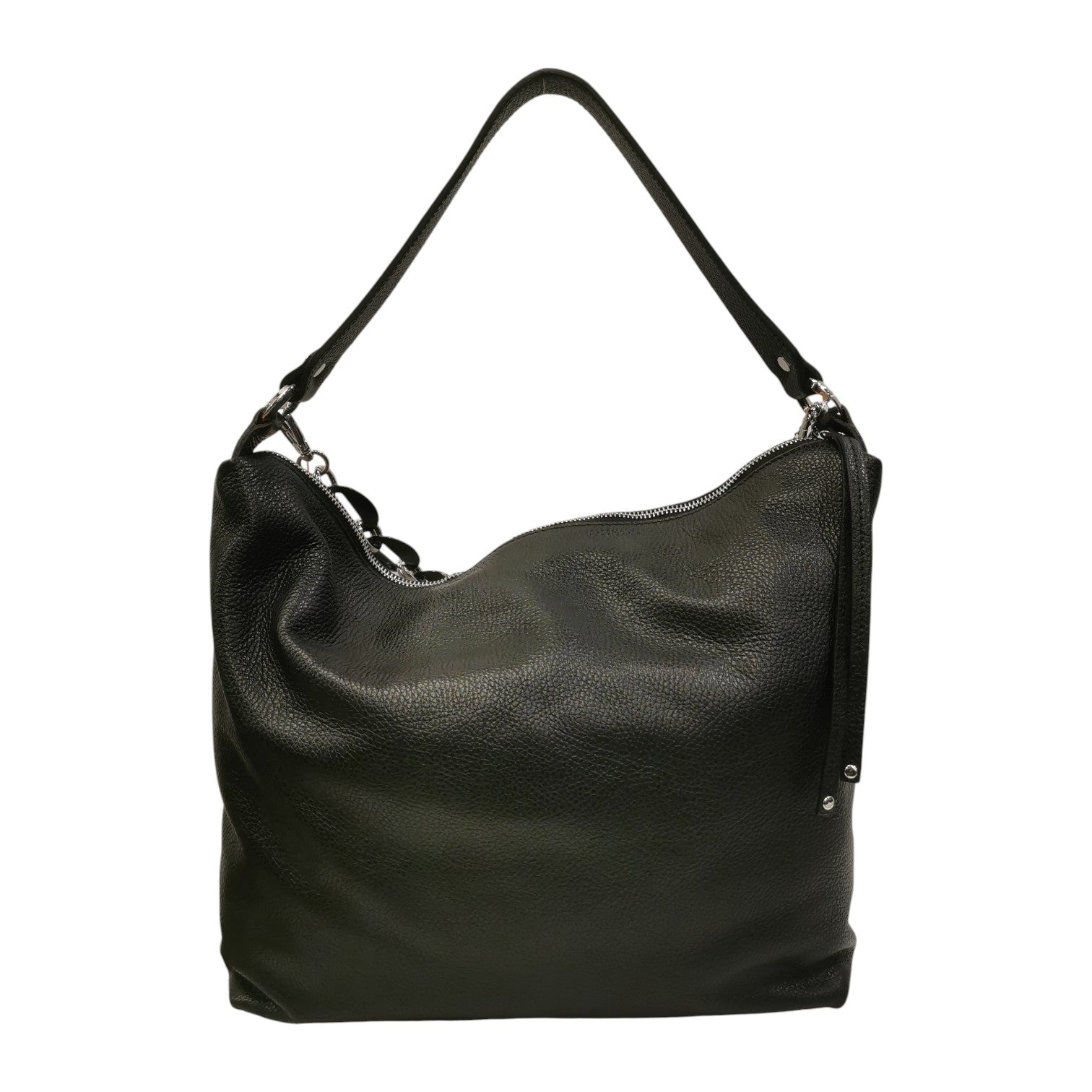 La Borsa a spalla firmata Caleidos, realizzata in pelle martellata color nero multi è caratterizzata da tracolla regolabile e removibile e da manico a catena removibile, presenta l'interno foderato in tessuto con tasca chiusa a zip. Con dettagli curati e una struttura spaziosa, è l'accessorio ideale per chi cerca un tocco di classe e funzionalità.