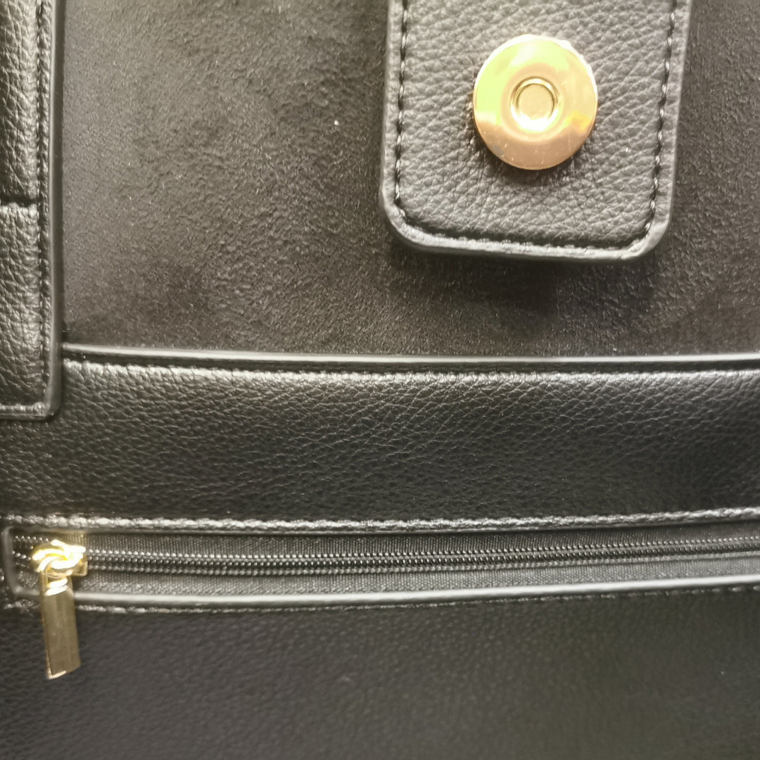 Gaelle Borsa a Spalla o Mano Maxi Shopper Doppia Portabilità in Ecopelle Nera da Donna