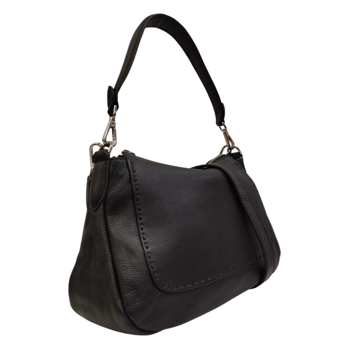 Gianni Conti Borsa Piccola a Spalla Linea Bali Donna in Pelle Nera con Tracolla e Impunture