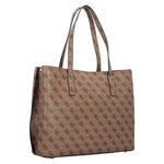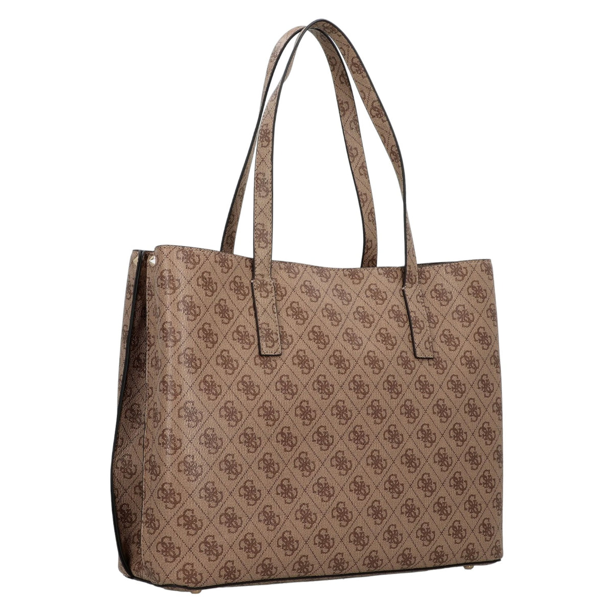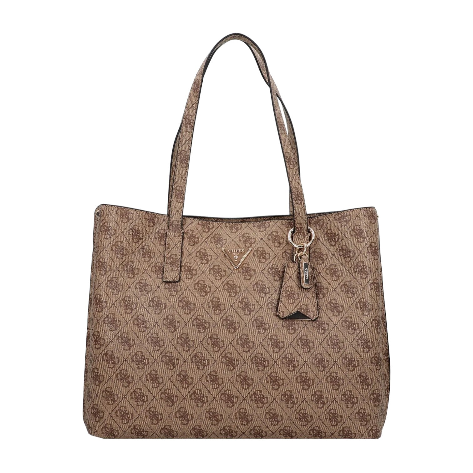 La Shopper firmata Guess, realizzata in ecopelle è caratterizzata da stampa logo 4G all-over e da charm pendente alla base del manico. Presenta dei piedini metallici alla base, e l'interno foderato in tessuto con tasca con zip, dotato di scomparto principale adatto per documenti in formato A4.