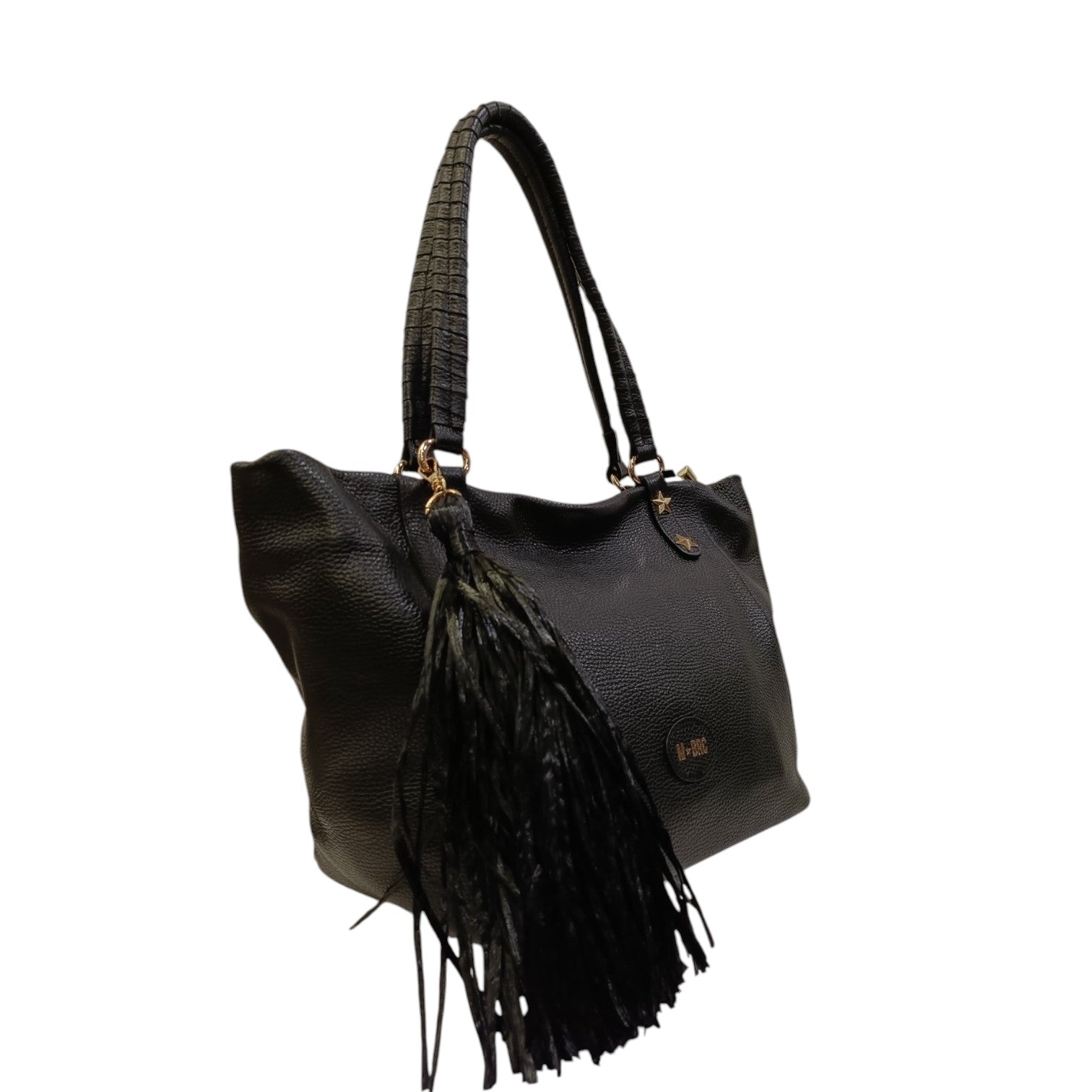 M Brc Borsa a Spalla Donna in Pelle Nero Linea Farouk con Accessorio Laterale Removibile