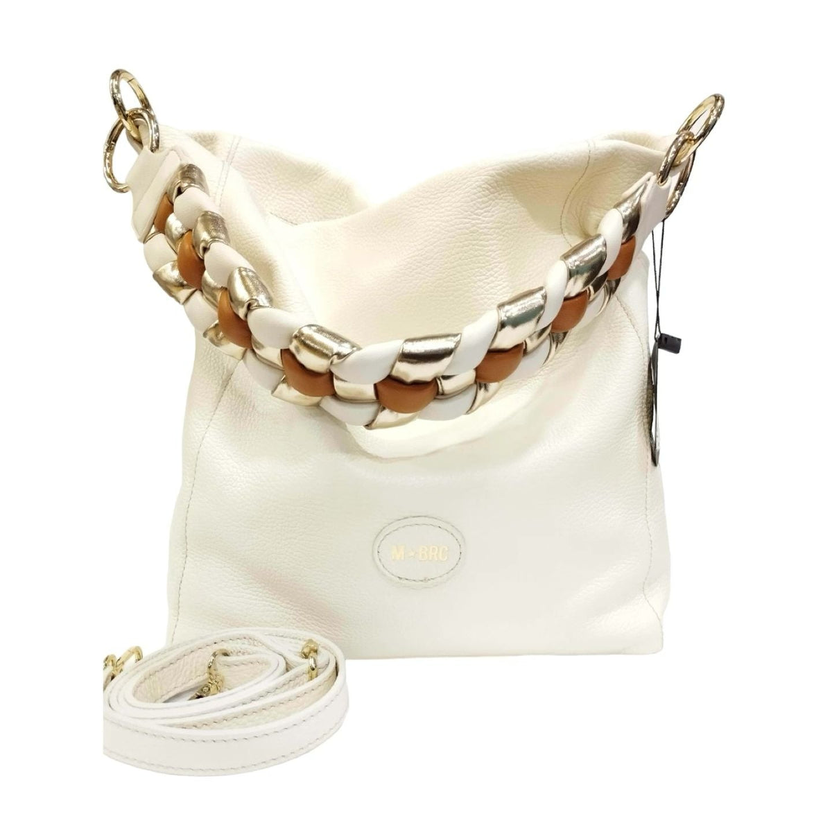 M Brc Borsa a spalla Sole bianco con manico intrecciato