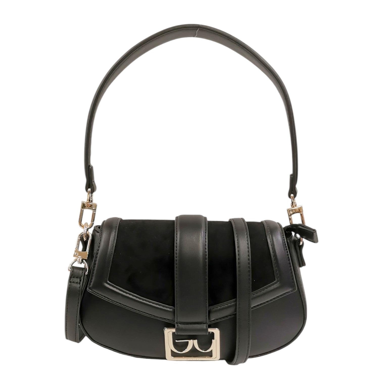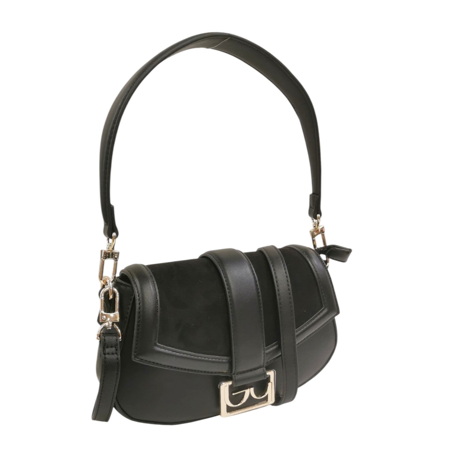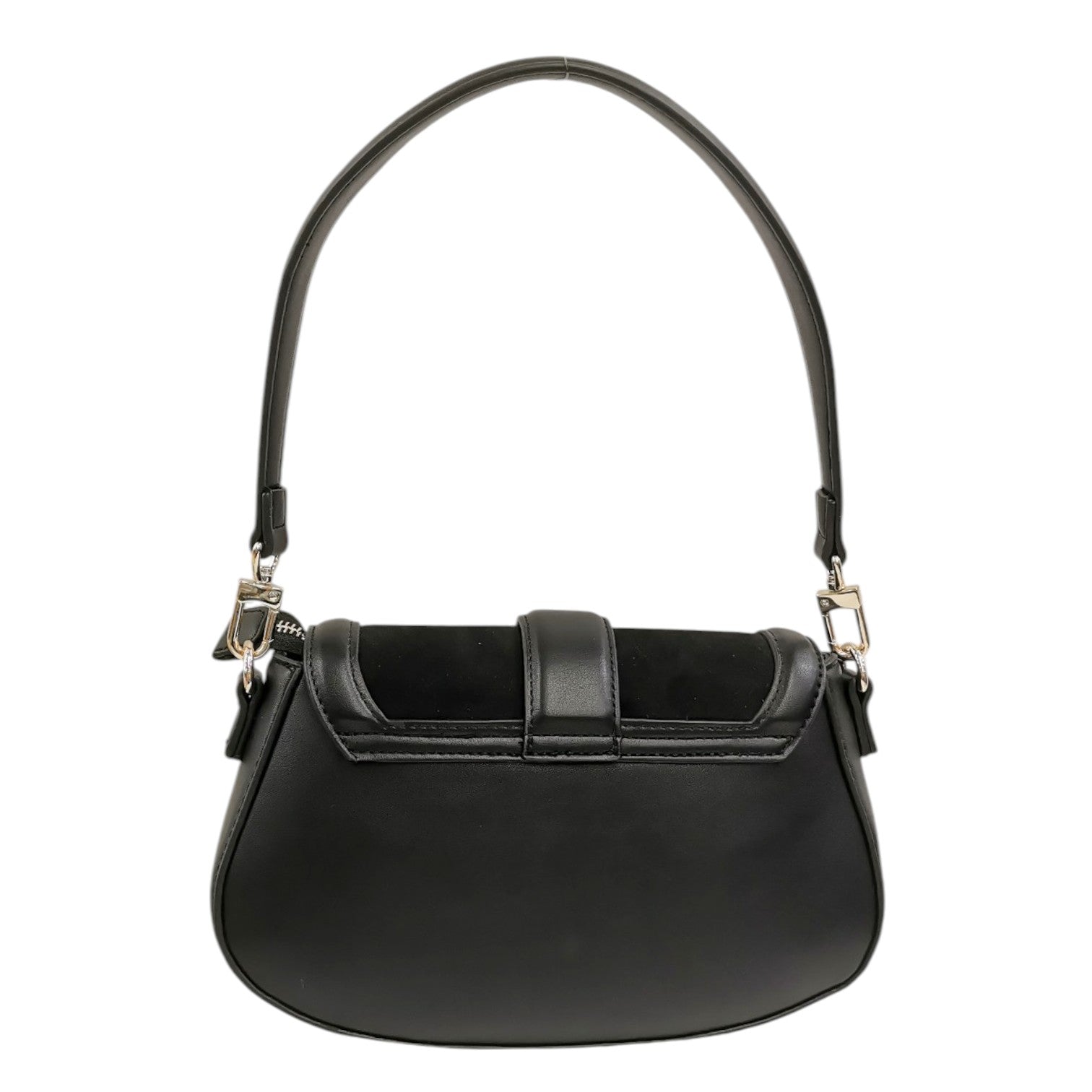 By Byblos Borsa a Spalla Donna in Ecopelle e Camoscio Nera con Tracolla e Logo