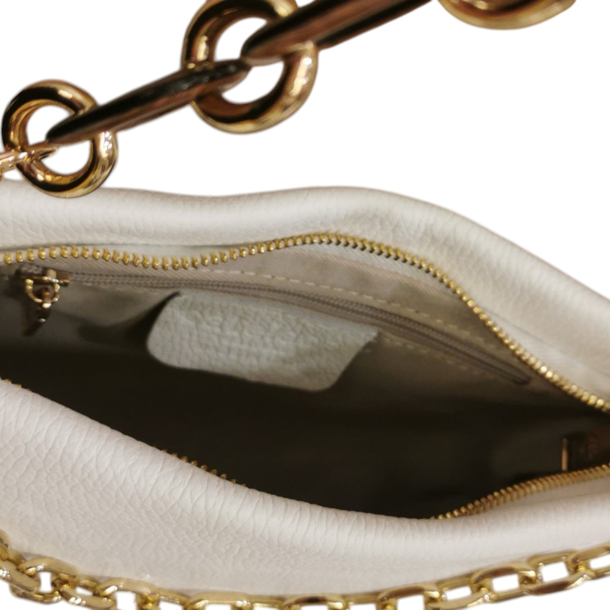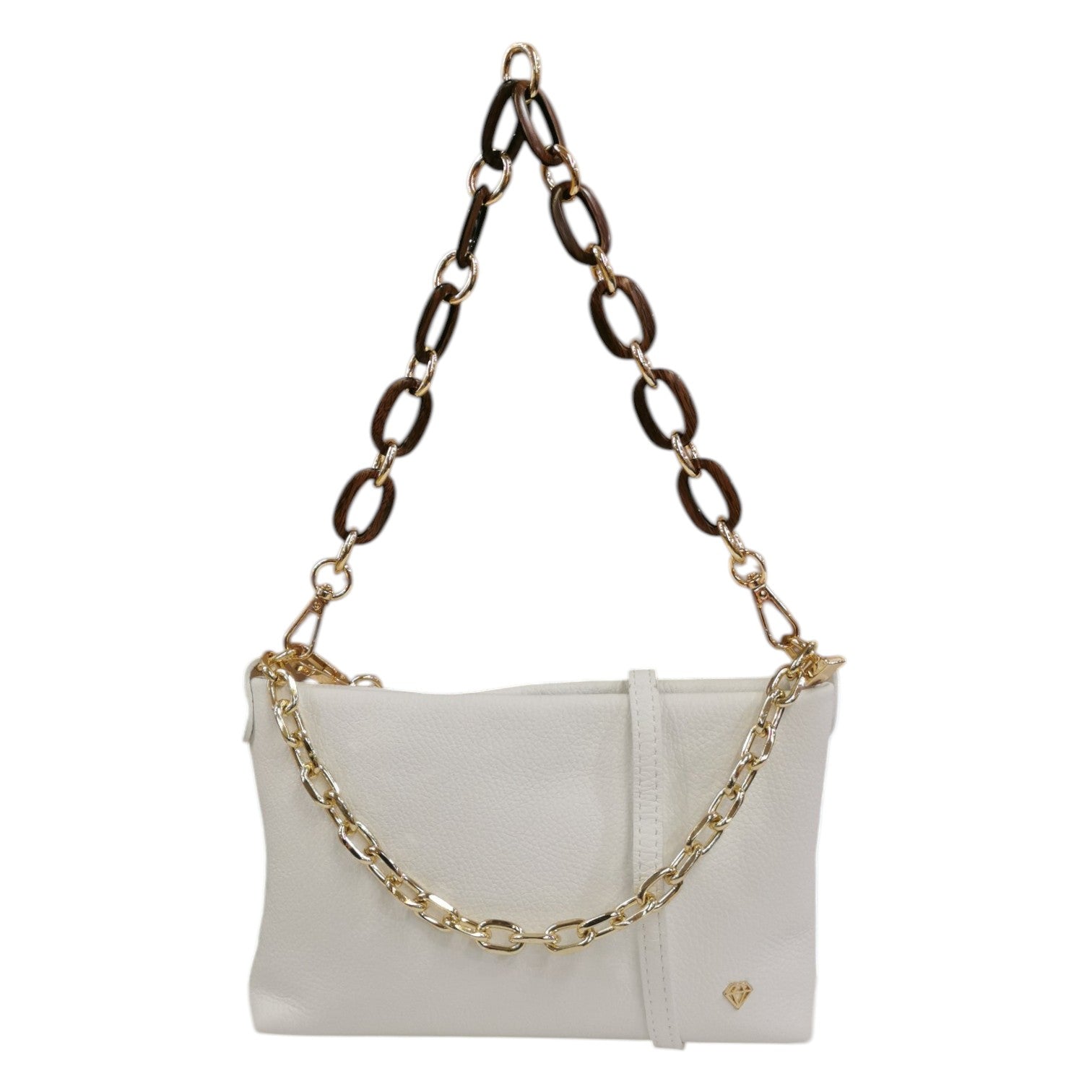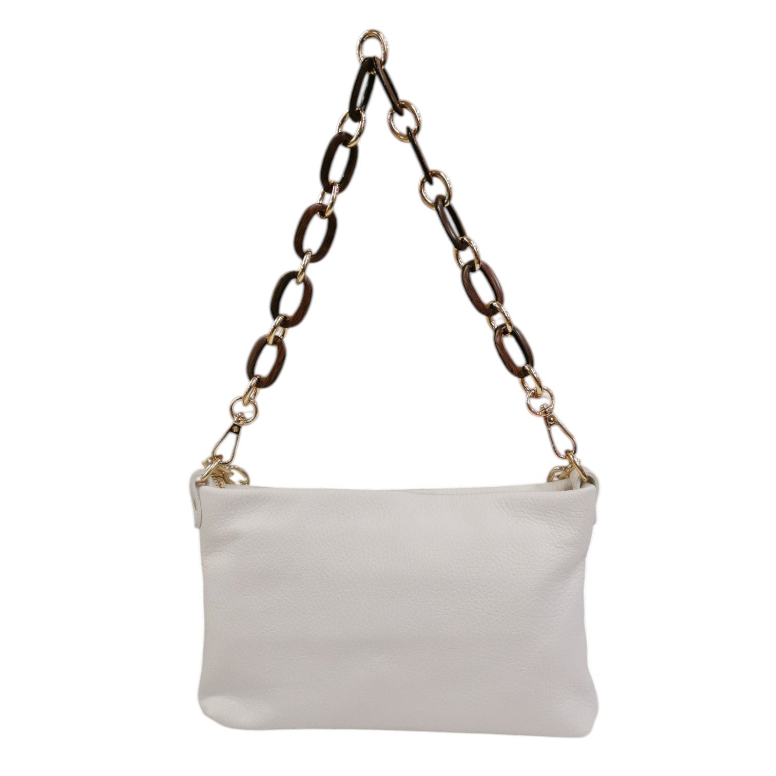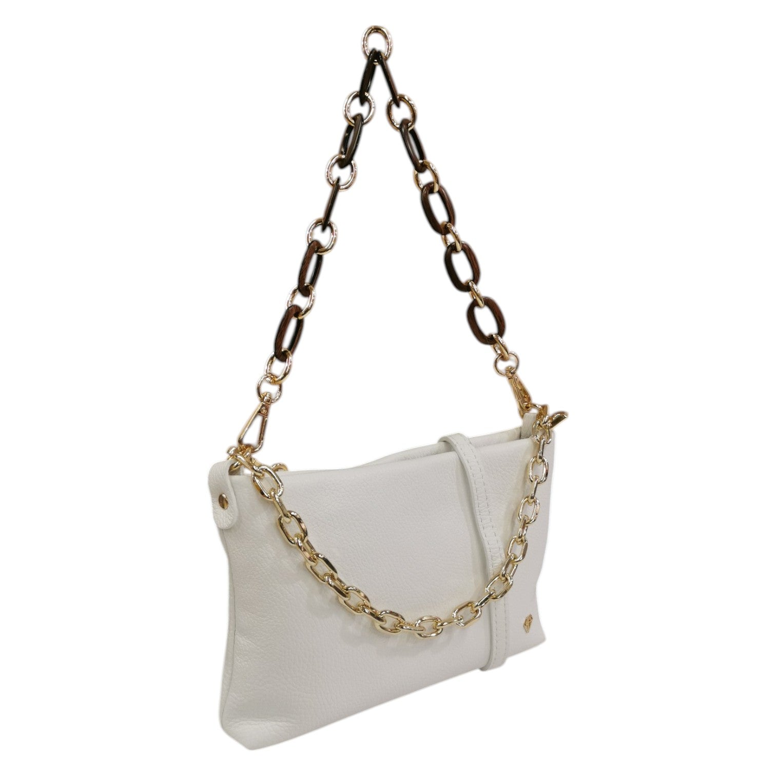 Caleidos Borsa a Spalla Donna in Pelle Bianca con Doppia Catena e Tracolla