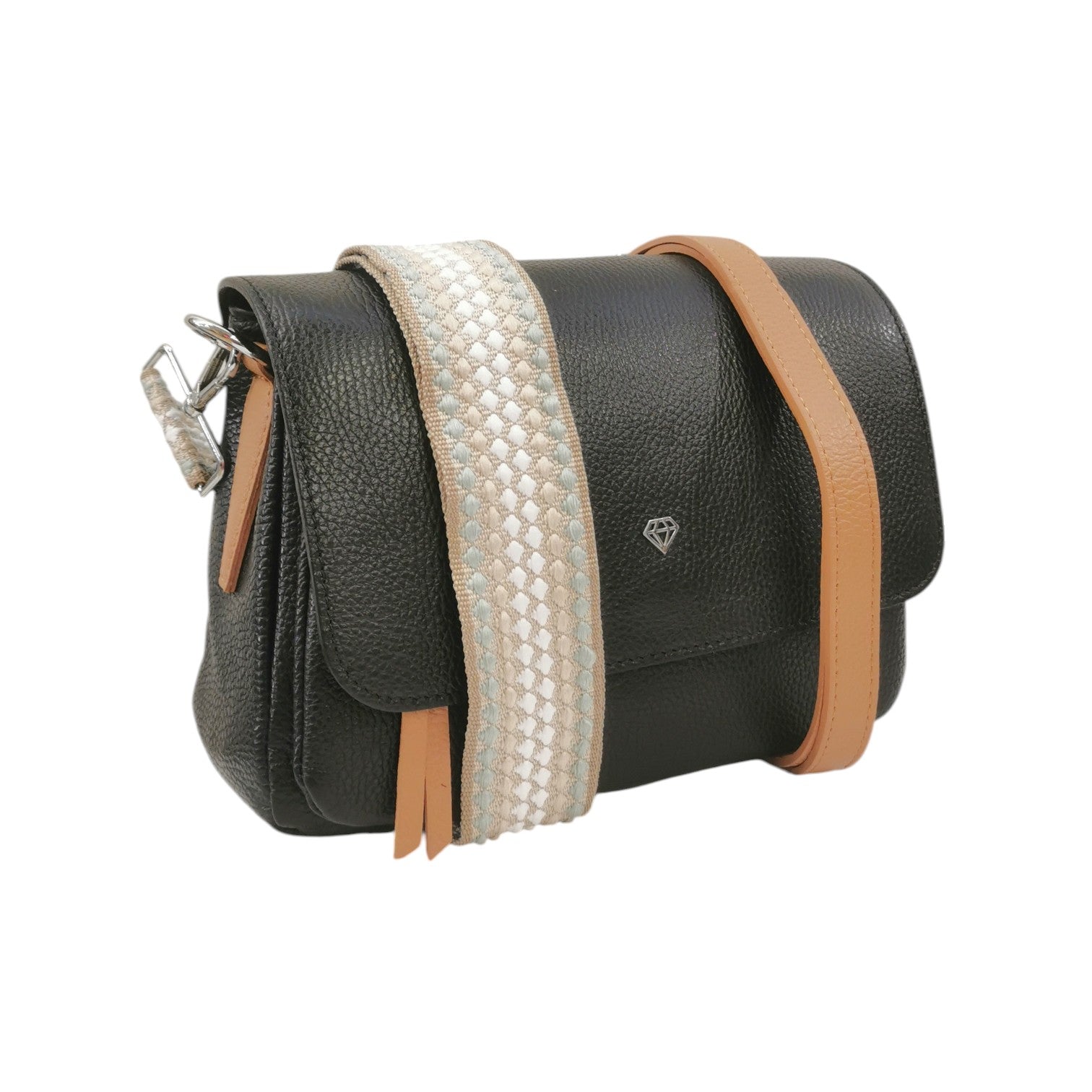 Caleidos Borsa a Tracolla Donna in Pelle Nera con Tracolla Cuoio
