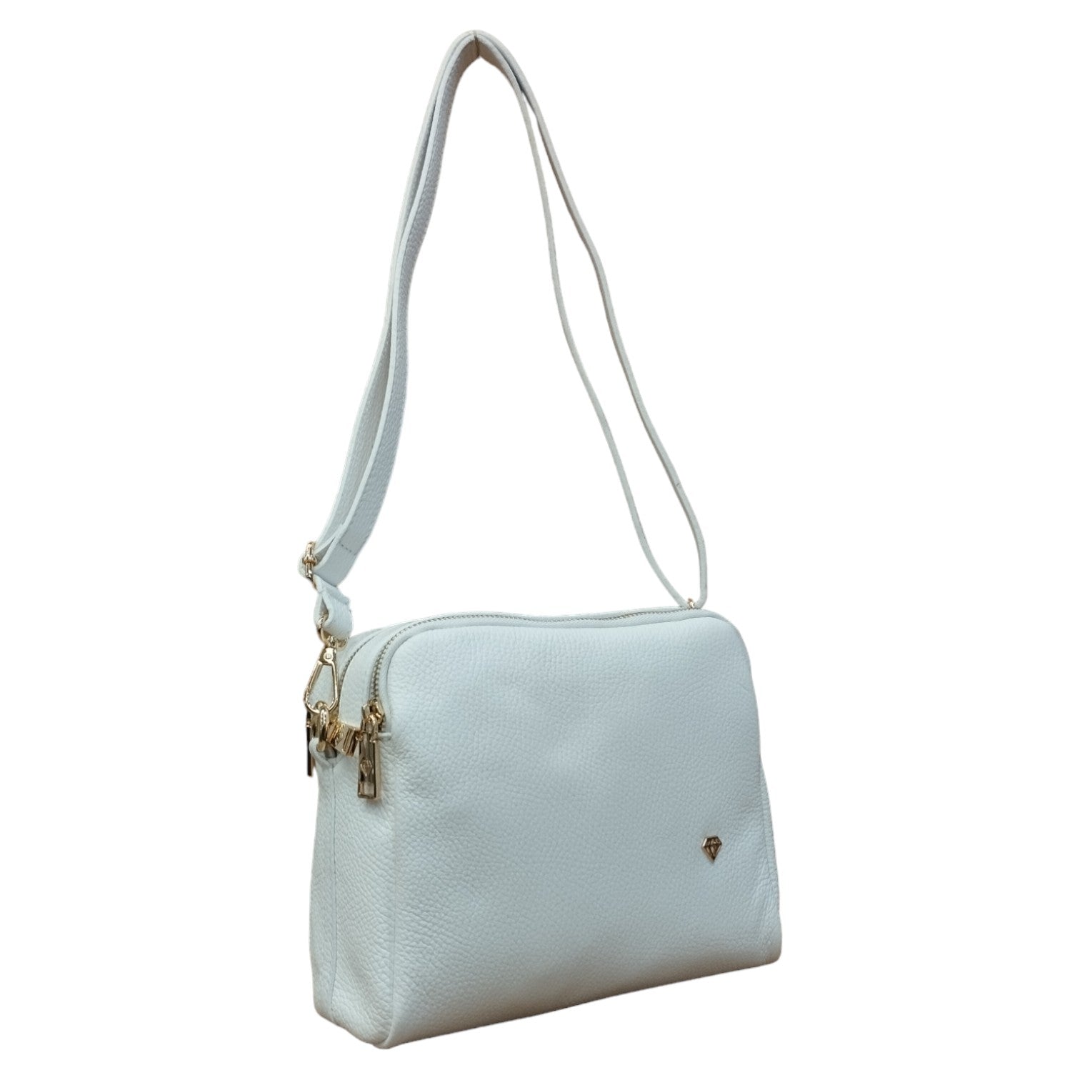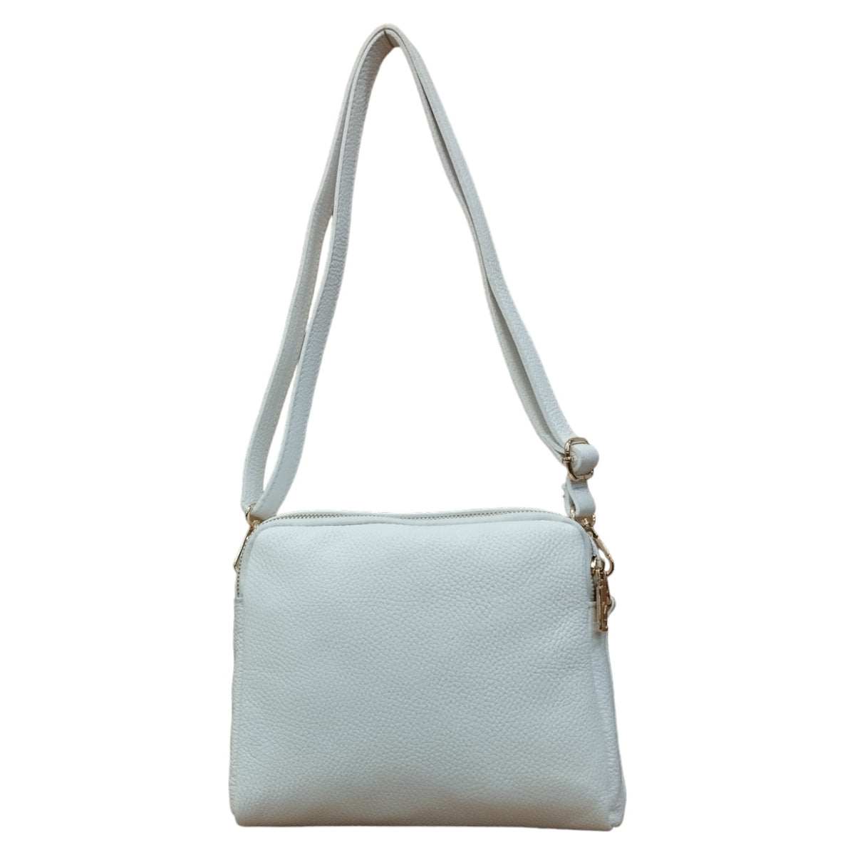 Caleidos Borsa a Tracolla Donna in Pelle Bianca con Triplo Scomparto