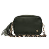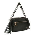 La Borsa a tracolla firmata Caleidos, realizzata in pelle è caratterizzata da pendente con frange alla base della tracolla. Una borsa alla moda e di tendenza e facile da indossare clutch, dispone di con manico a catena removibile con tasca posteriore con zip.