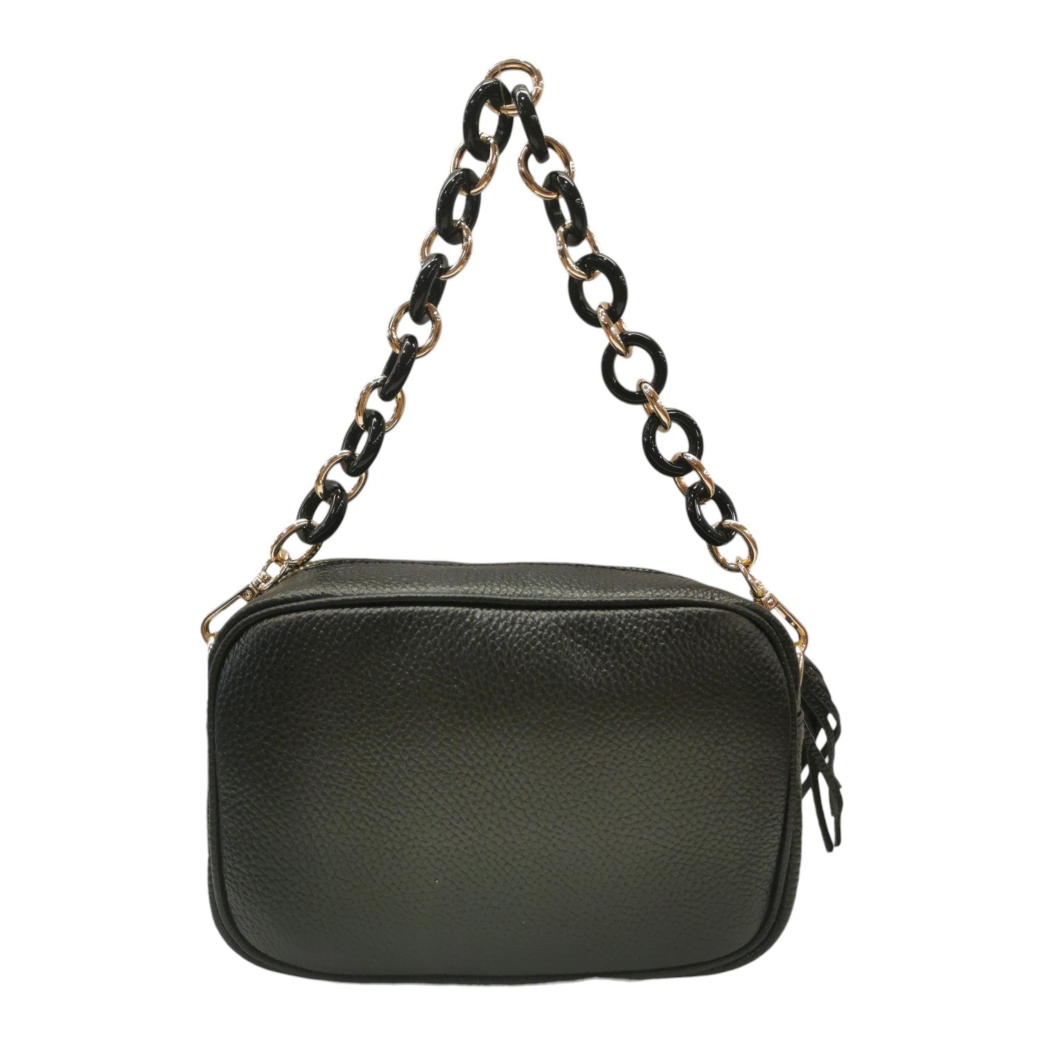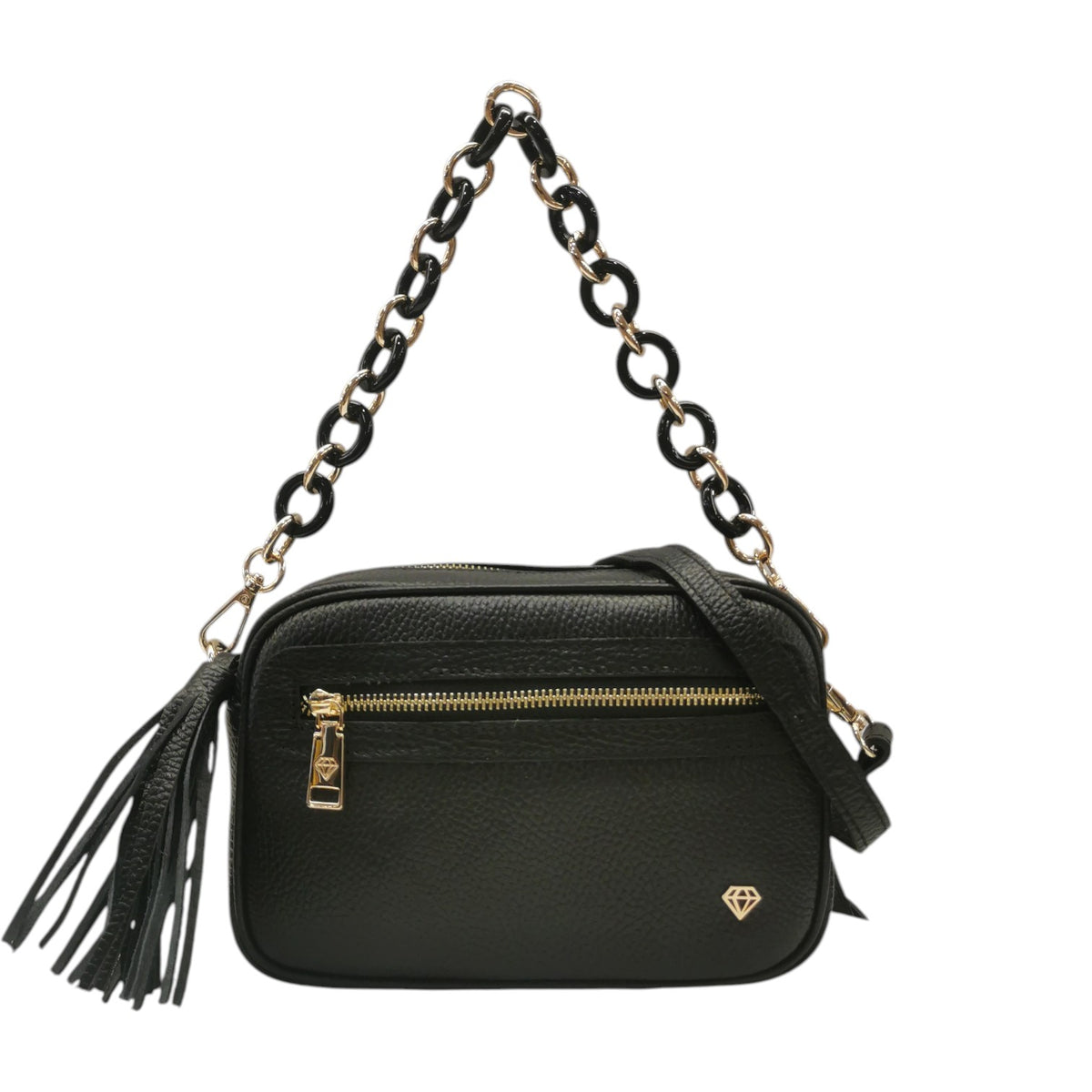 Caleidos Mini Bag Donna in Pelle Nera con Manico a Catena e Accessorio