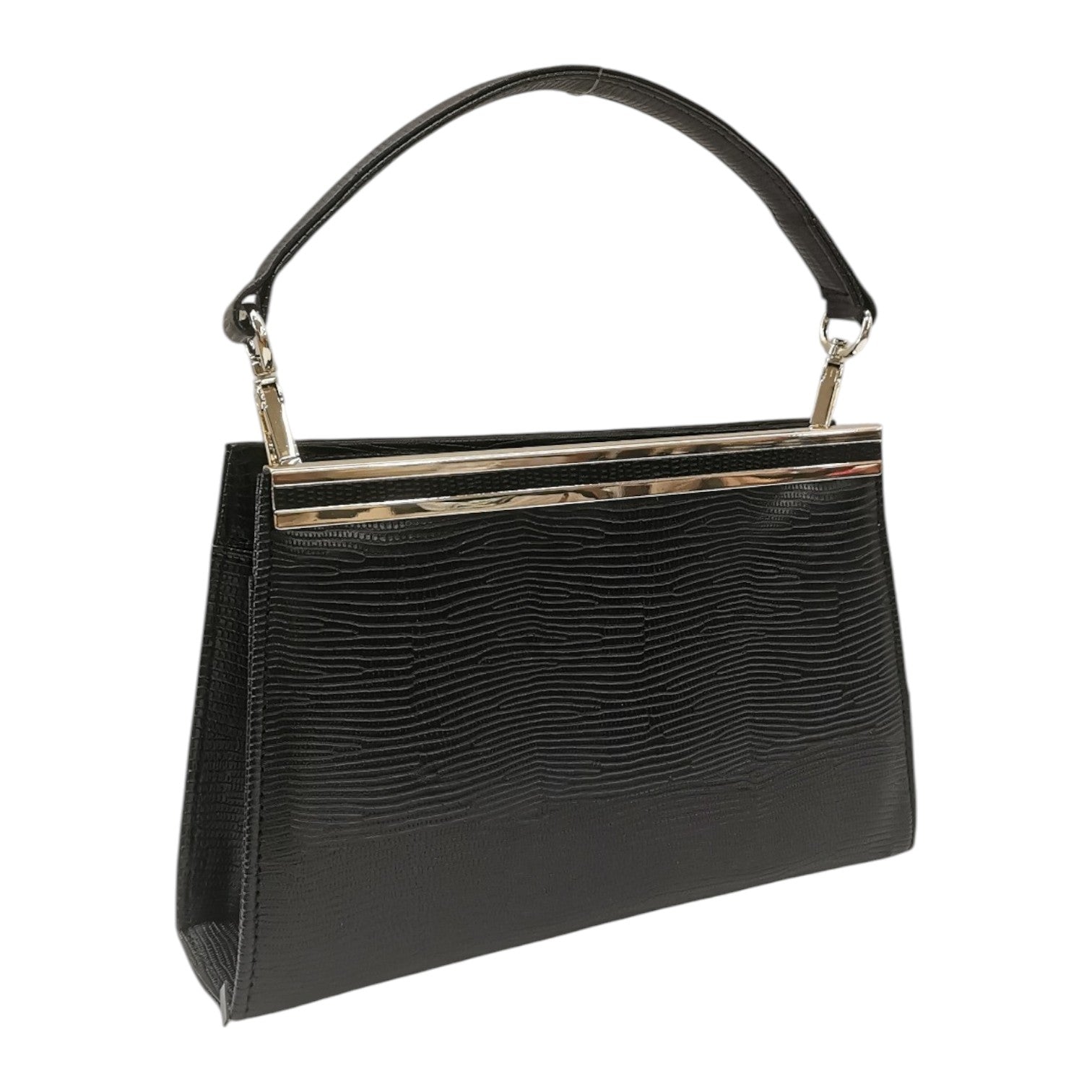 Della Fonte Pochette a Mano Rigida Nera Stampa Effetto Cocco da Donna
