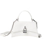 La Borsa a mano firmata Gaelle, realizzata in ecopelle è caratterizzato da lucchetto con logo Gaelle Paris applicato sul davanti e da chiusura tramite doppio bottone automatico, scomparto interno con tasca a parete con zip, manico, tracolla a catena metallica e salvaspalla in ecopelle regolabile e removibile.