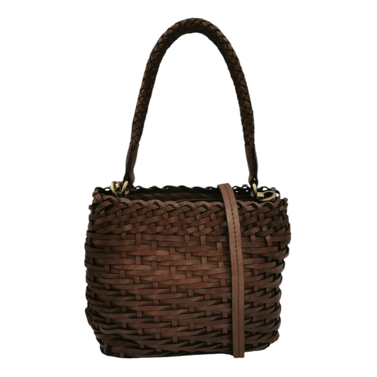 Gianni Conti Borsa a Mano Linea Guia Donna in Pelle Intrecciata Testa di Moro con Tracolla