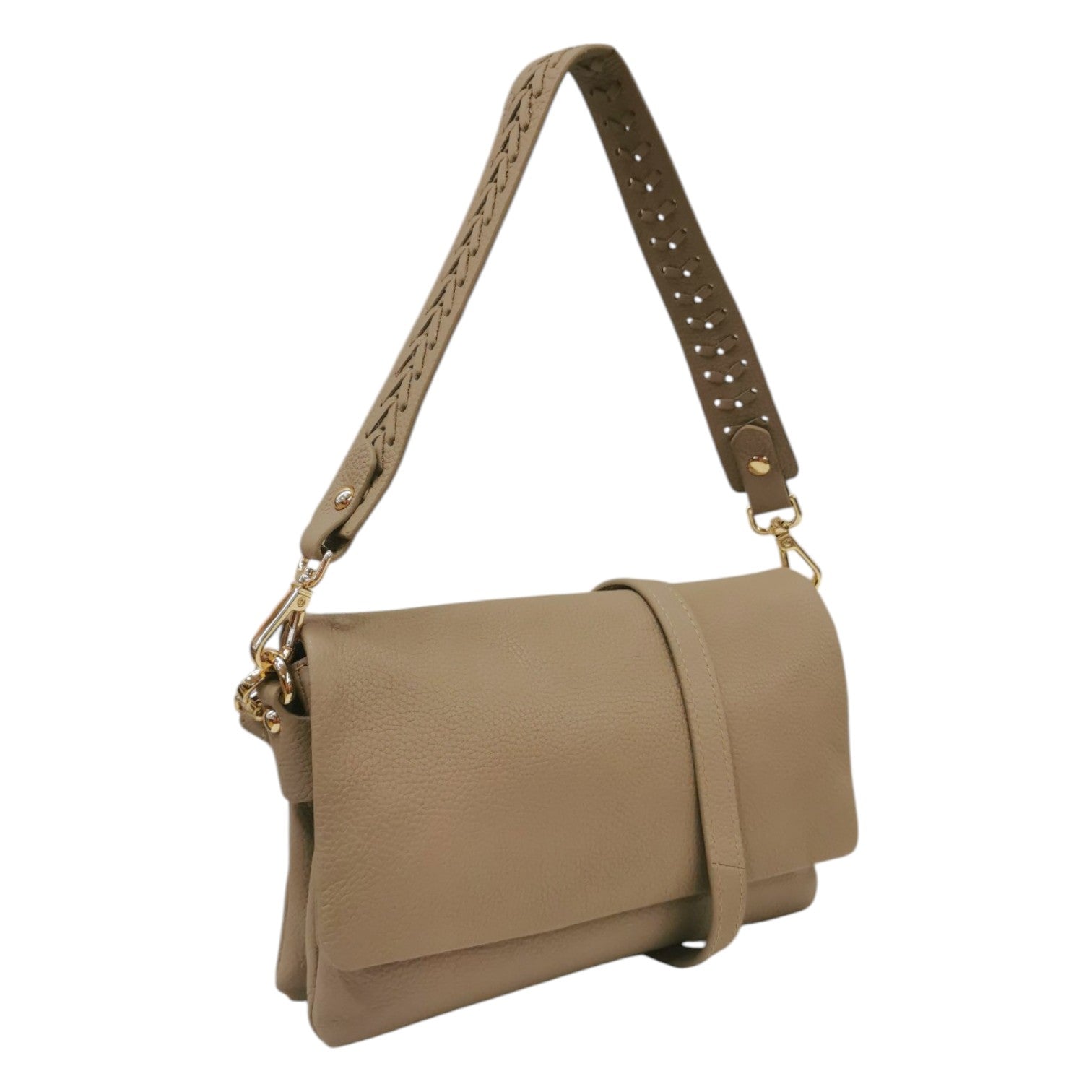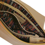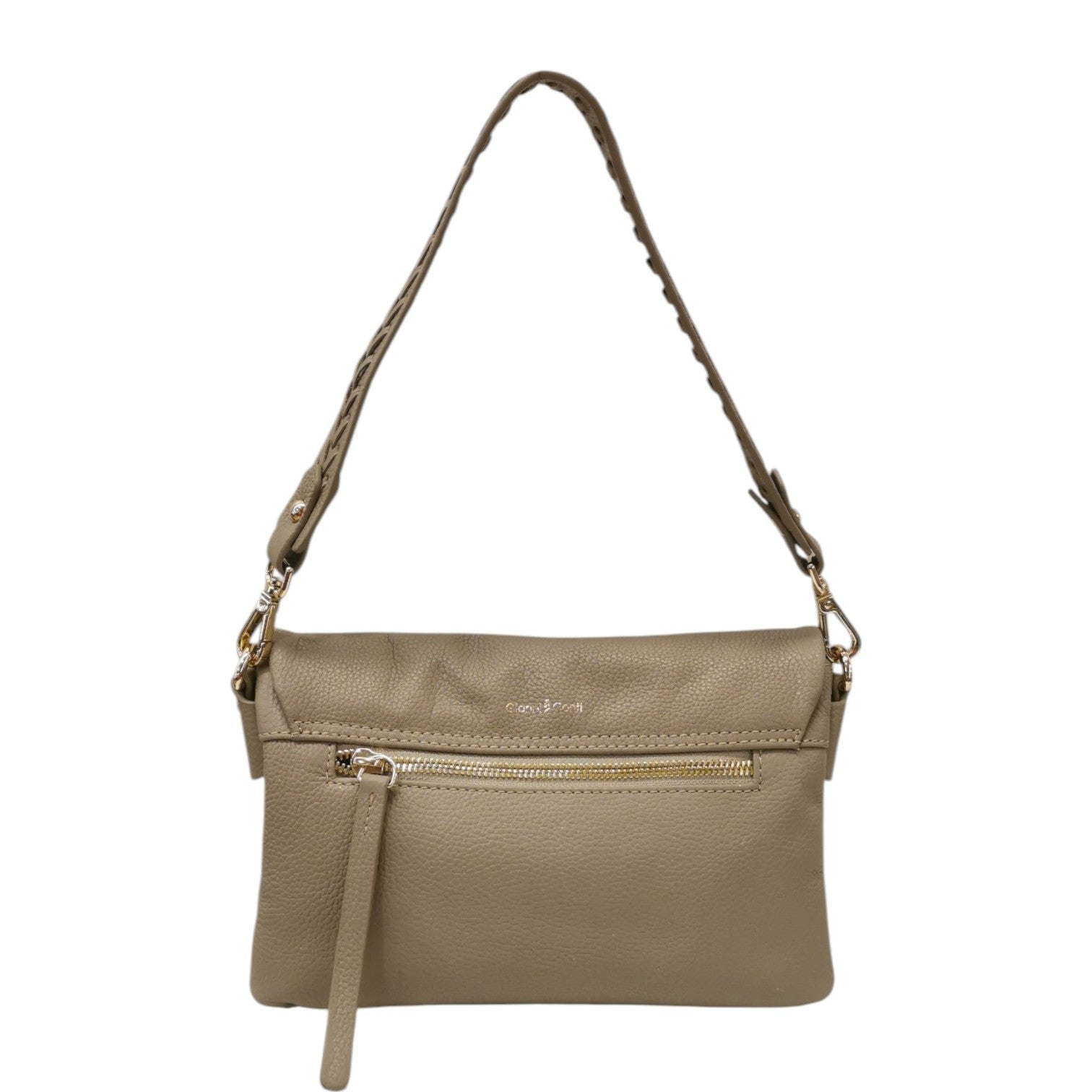 La Borsa a spalla firmata Gianni Conti, realizzata in morbida pelle nella variante ecru è caratterizzata da tasca posteriore chiusa con zip e da manico removibile in pelle con dettaglio intrecciato per portarla a spalla o da tracolla regolabile e removibile, l'interno è suddiviso in tre scomparti di cui presenta una tasca con zip ed una aperta.