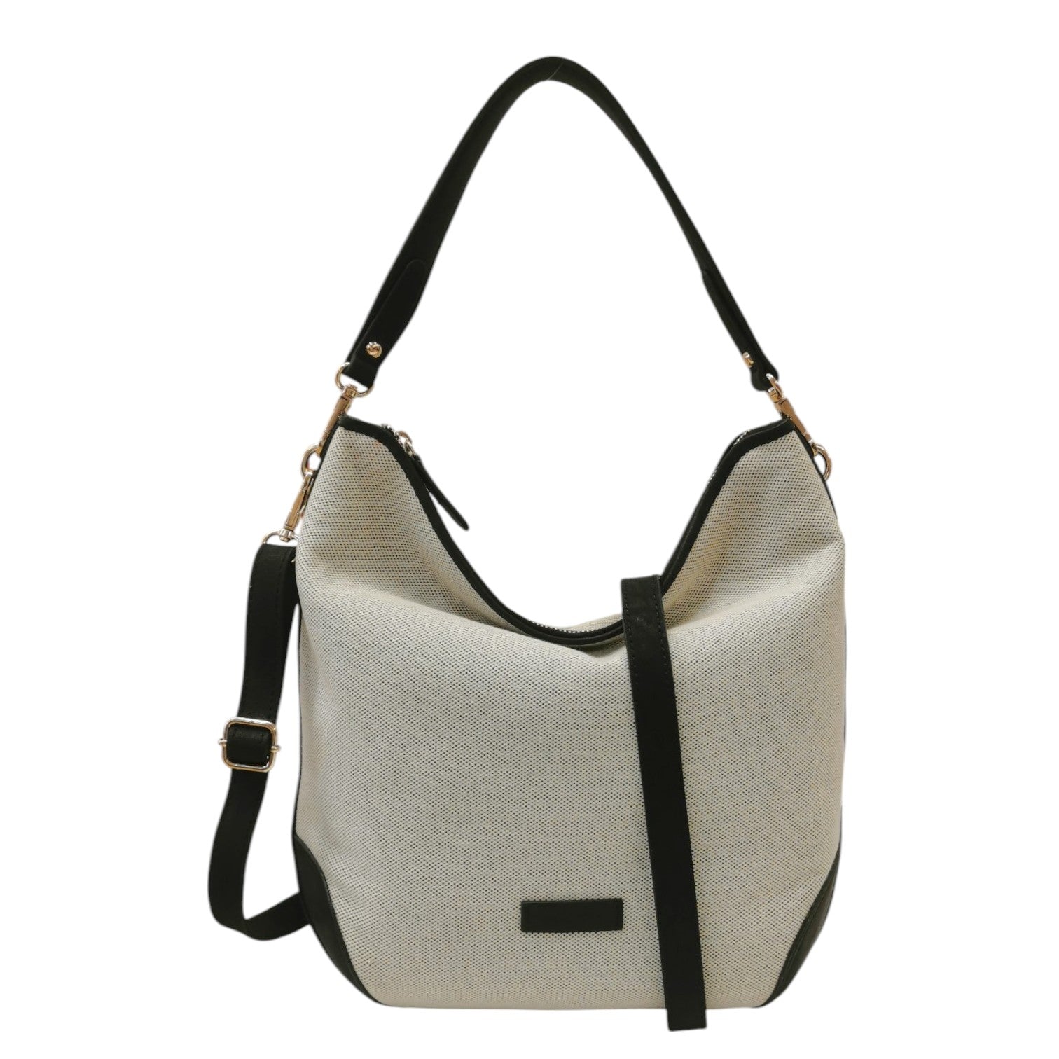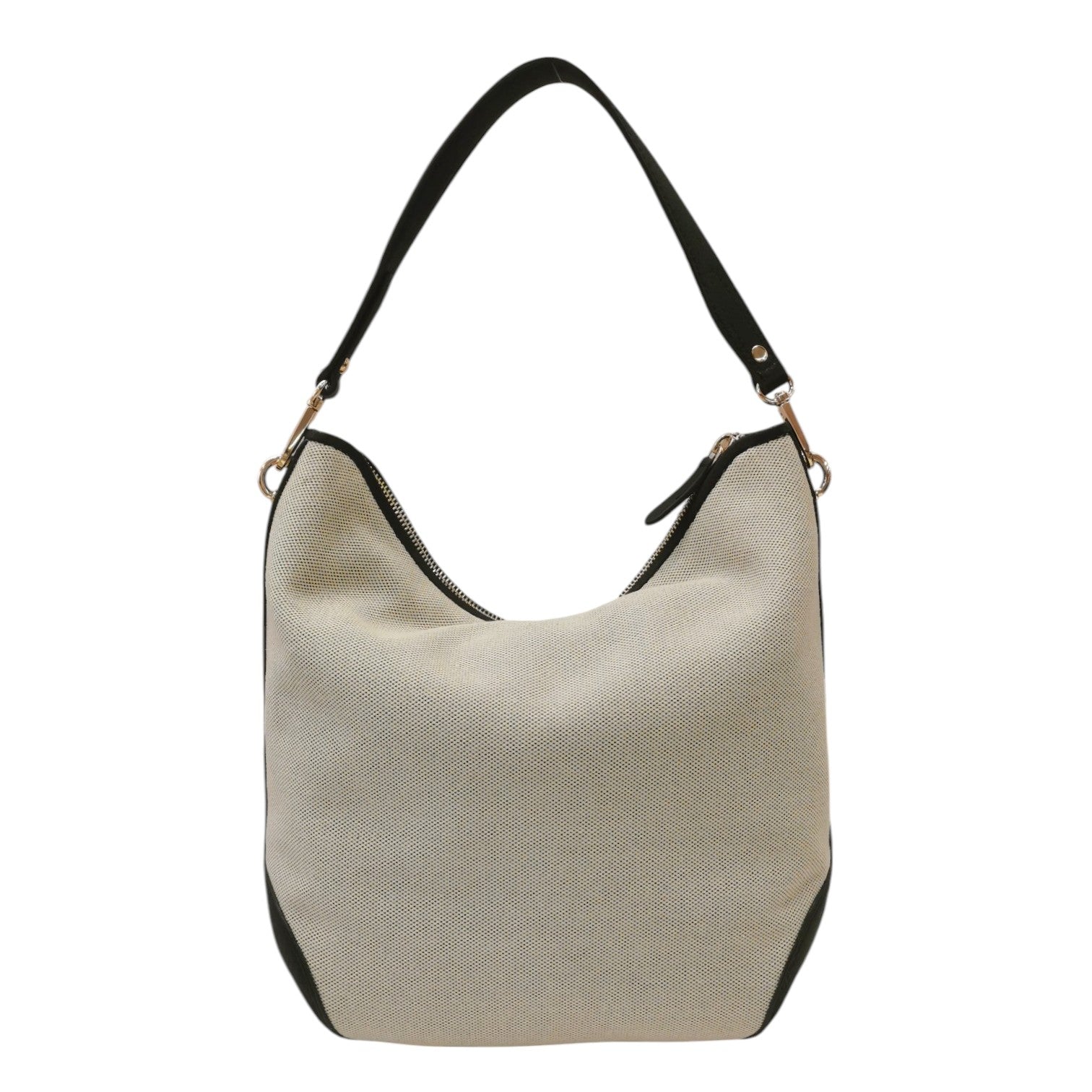 Gianni Conti Borsa a Spalla Donna in Tessuto e Pelle Sabbia Nero con Tracolla