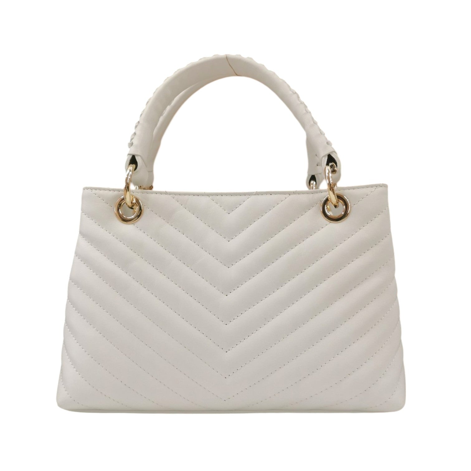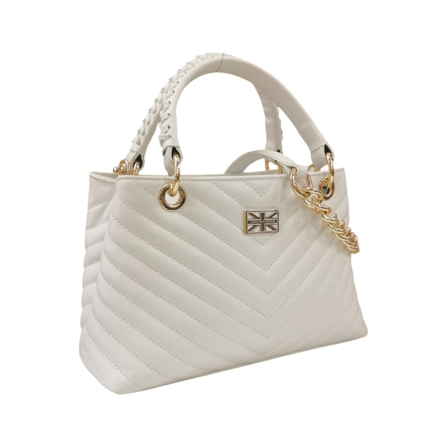 John Richmond Borsa a Mano Donna in Pelle Trapuntata Bianca con Metalleria Oro evTracolla Catena