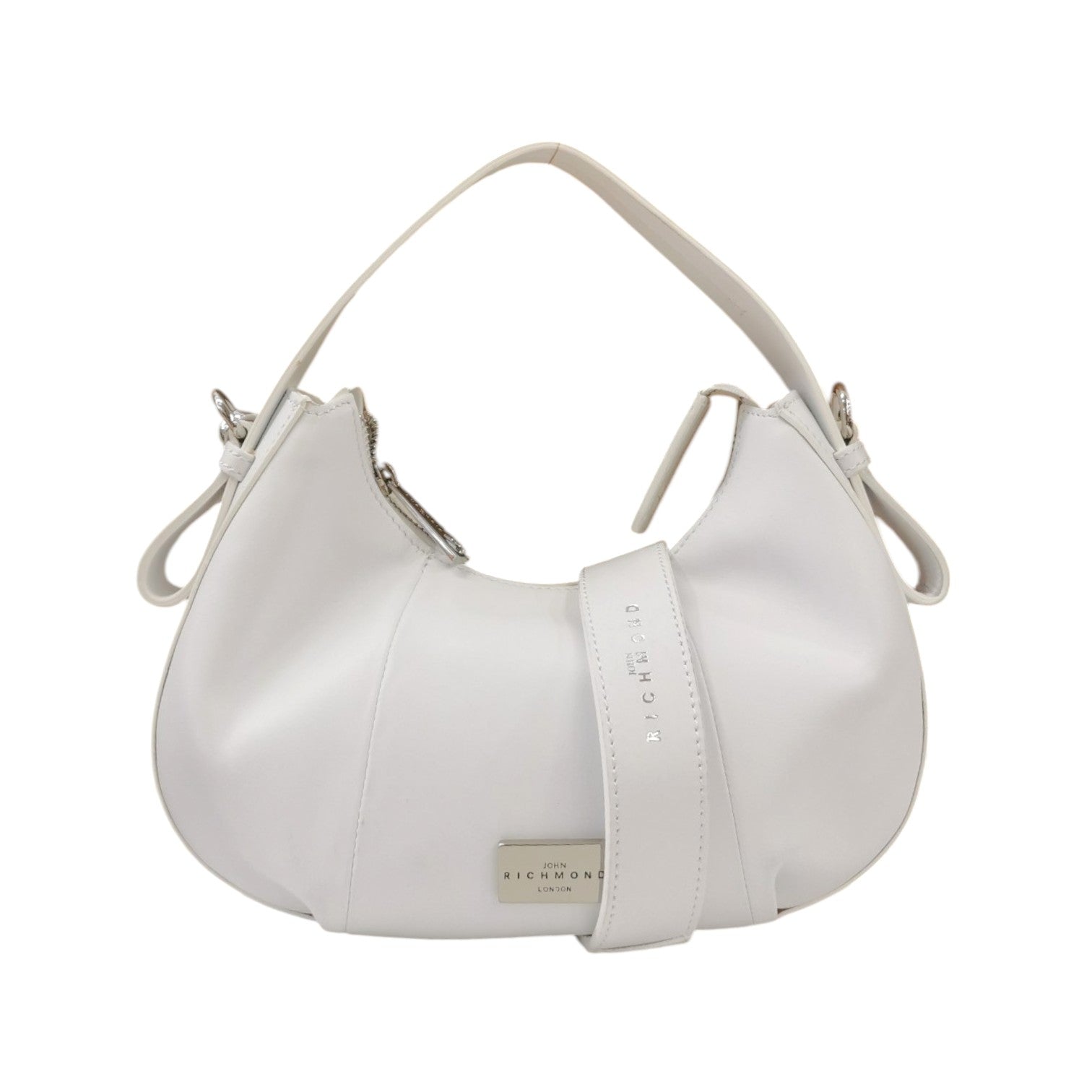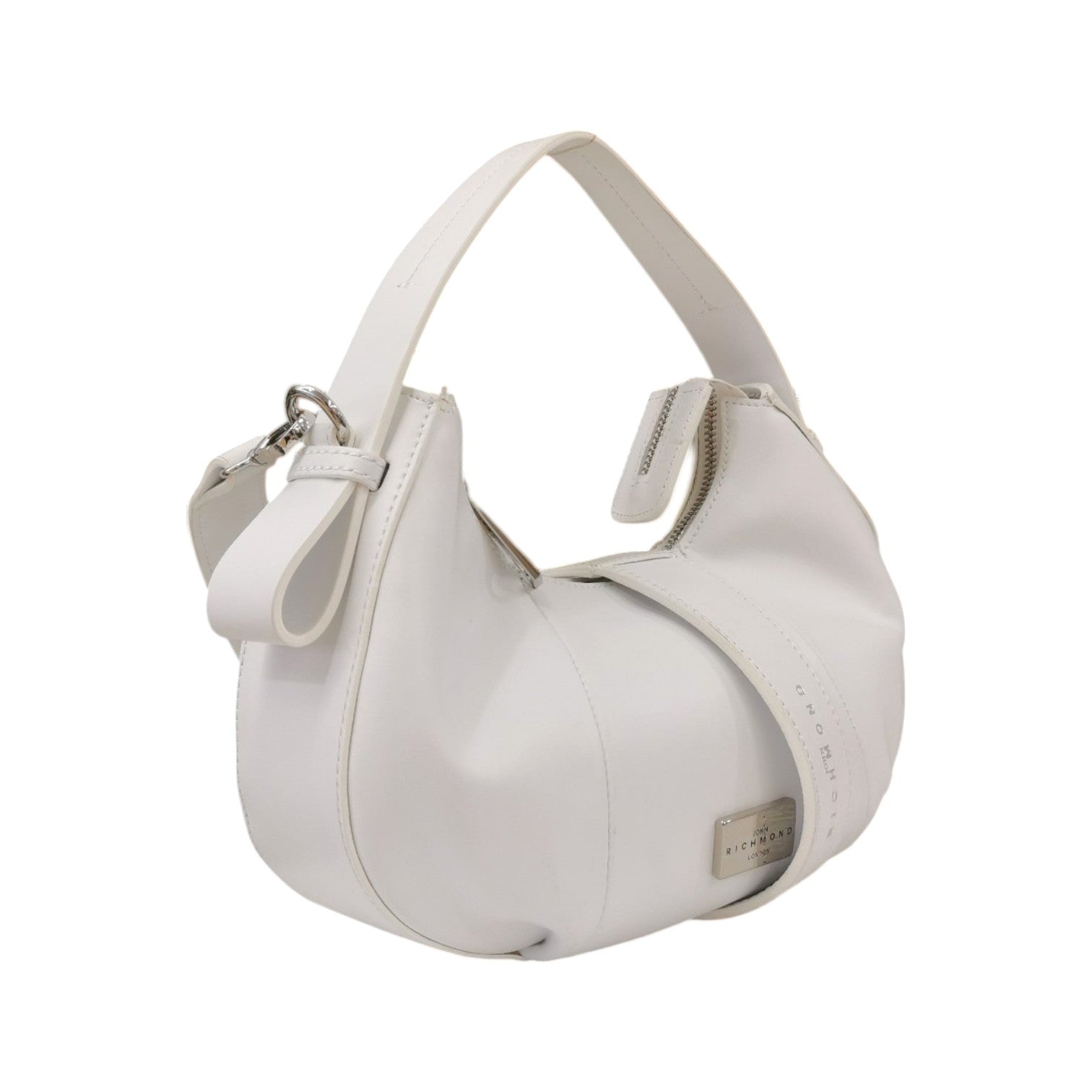 John Richmond Borsa a Mano Piccola Bianca Argento con Tracolla in Tessuto da Donna