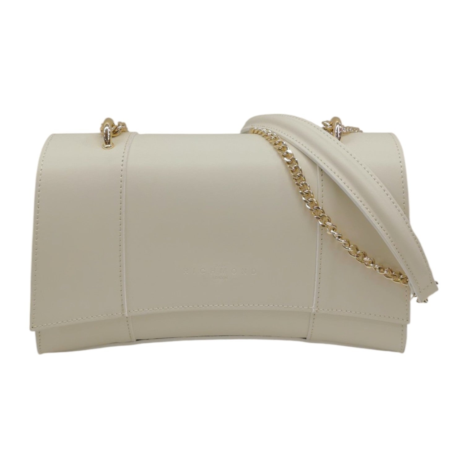 John Richmond Borsa a Spalla Donna in Pelle Beige e Tracolla Catena Oro