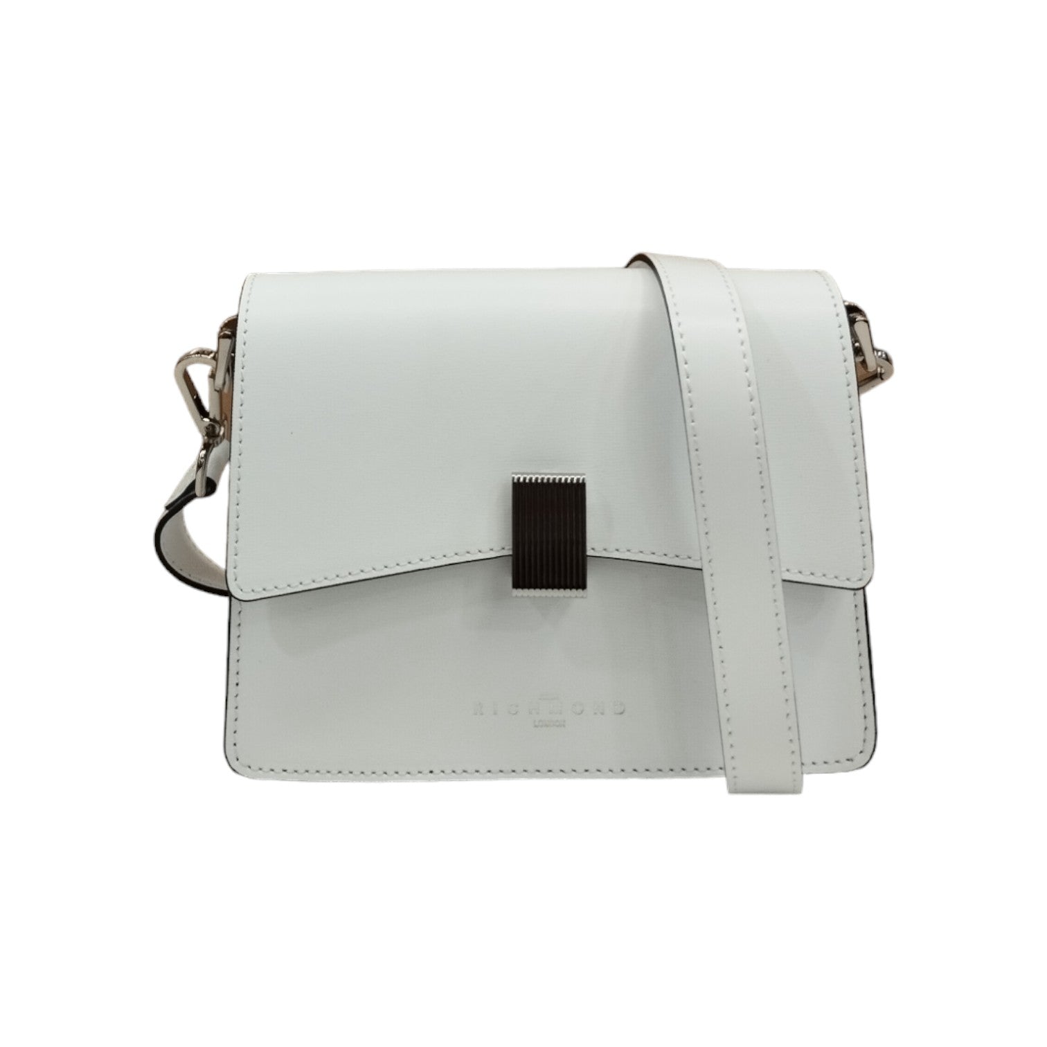John Richmond Borsa a Tracolla Rigida Donna in Pelle Bianca con Metalleria Argento