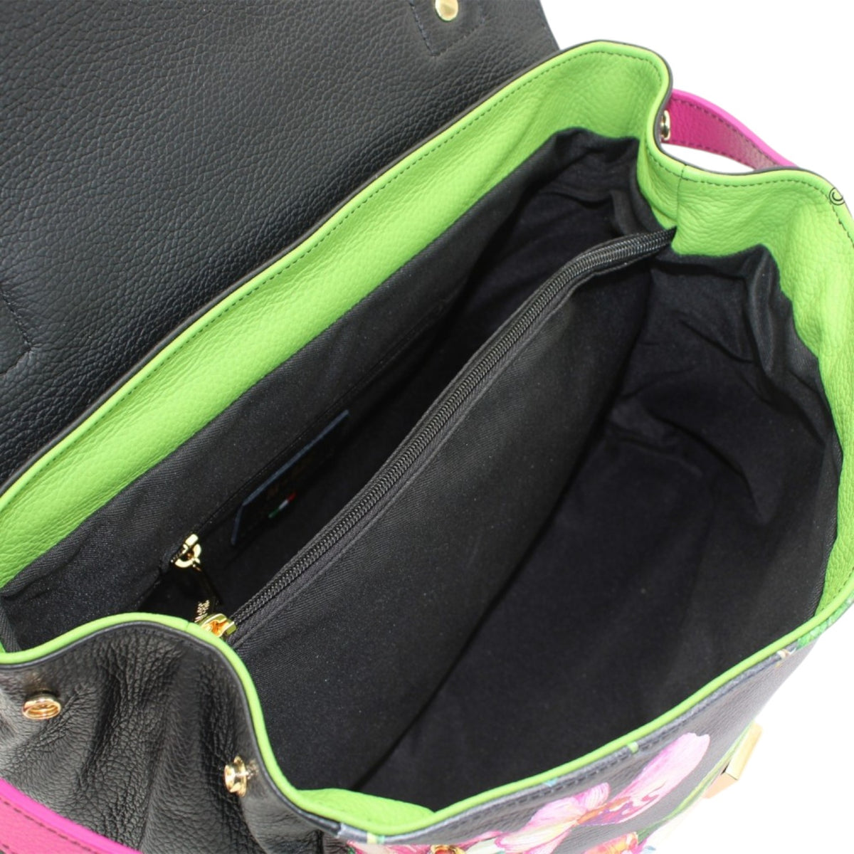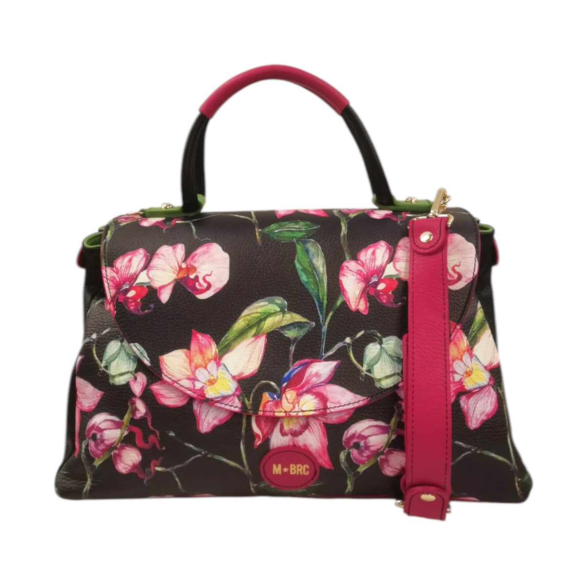 M Brc Borsa a Mano Nera Floreale Linea Mamma Mia con Tracolla da Donna